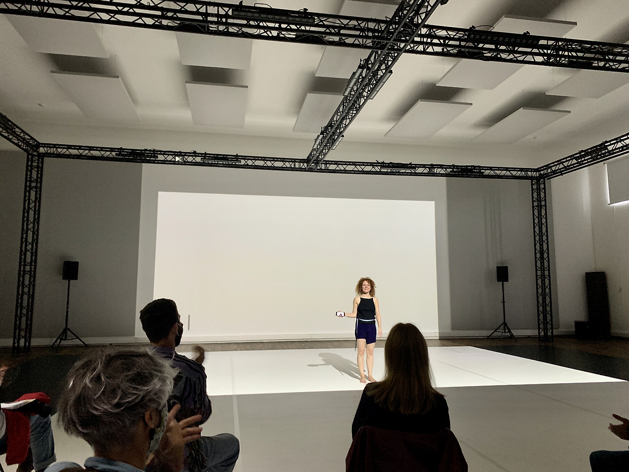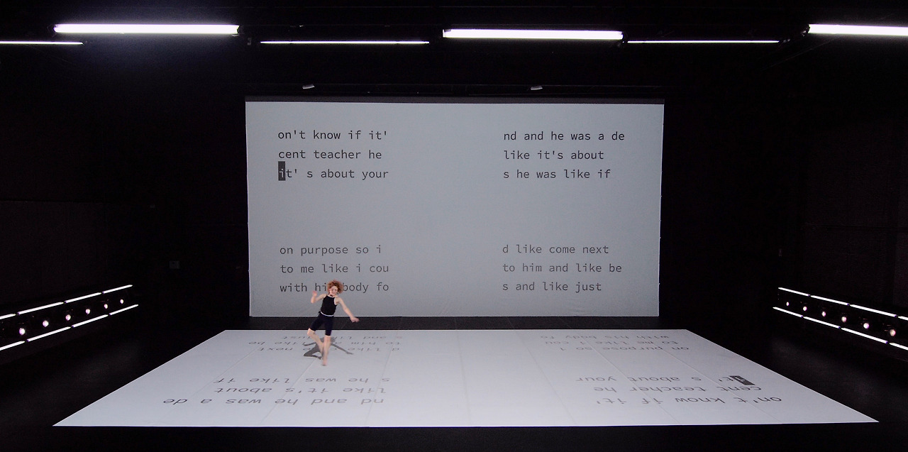 ‘스테레오’는 뉴욕의 언어공학자 피에르 고다르가 실시간으로 텍스트를 구성하면 안무가 리즈 산토로가 마르세유에서 춤을 추는, 독특한 방식의 현대무용이었다. 반대로 리즈의 움직임에 따라 그때그때 단어나 아이디어가 텍스트가 전송되기도 했다. 벽과 바닥의 하얀 스크린으로 커서가 움직이고 그 위로 독무가 유연하게 흘렀다.