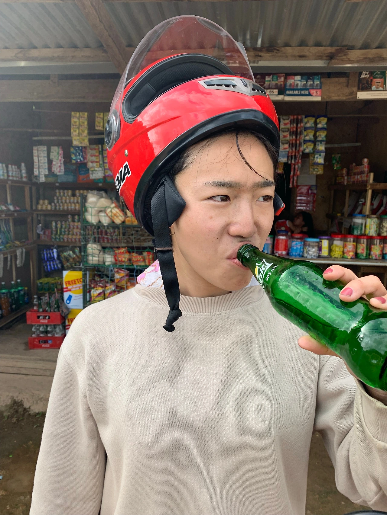 타이타이Taytay에 도착한다. 팔라완의 고속도로는 타이타이를 기점으로 두 갈래로 나뉘고, 북쪽을 둥그렇게 돌아 다시 타이타이로 돌아온다. 교통의 요지라기엔 너무나도 작은 라운드어바웃이 동과 서, 남을 나눈다. 벌써 5시간을 달리고 있다. 한국에서 우등버스를 타도 힘들 시간. 어느 순간 체념하곤 내가 백팩인지 헬멧인지 사람인지, 그저 흔들리며 간다. 땀은 땀대로 흘리고 매연은 매연대로 마신다. 화장실도 가고 싶어. 목이 탄다. 탄산 생각이 간절하다. 라운드어바웃을 지나 첫 번째 보이는 가게에 선다. 어린 소녀가 보는 간이 가게. 오래된 나무 가판대 위로 빛바랜 과자들이 조롬 늘어서 있다. 그냥, 어서 스프라이트, 스프라이트를 주세요.