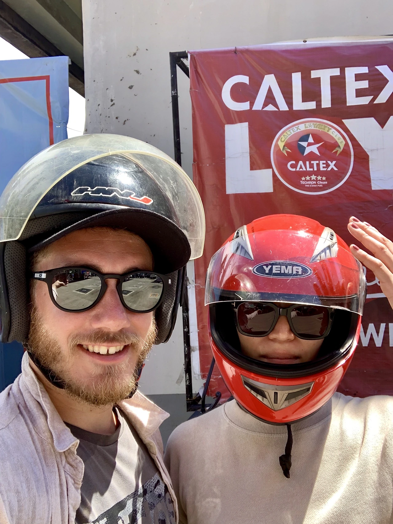 공사 중인 호텔들이 하나둘 보인다. 우리를 맞는 커다란 석회 절벽. 약간은 무섭기도 한 웅장함. 엘 니도다. 6시간을 달려 도착한 우리의 목적지. 얼굴이 매연으로 시커멓다. 니콜라스는 헬멧도 없이 햇빛 바람 다 맞았다. 선글라스를 벗으니 영락없는 빨간 판다. 머리는 또 어떻고. 온 머리카락이 넘어가 꼭 곱게 머리 빗은 할머니 같다. 너무 웃겨. 킥킥대며 사진을 남긴다.