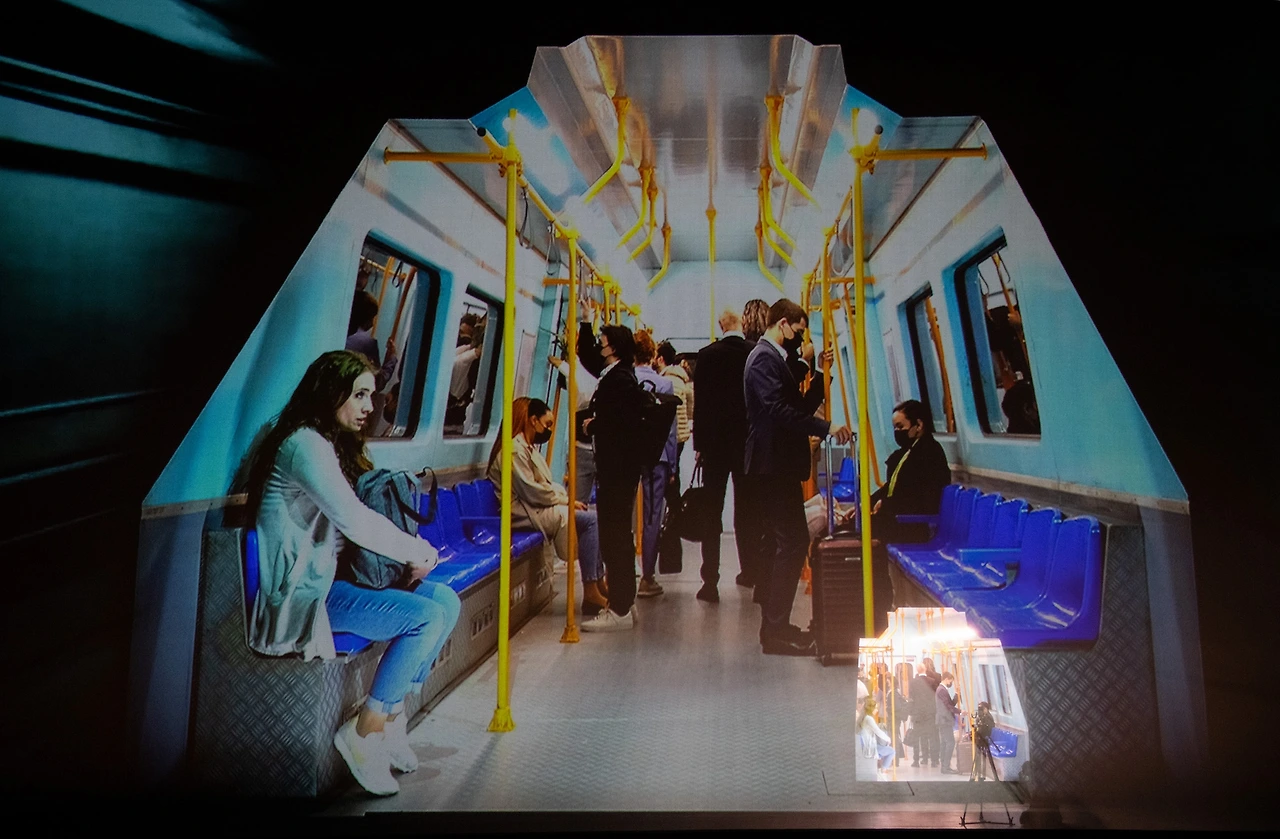 파우스트의 아이를 임신한 마르그리트는 지하철을 타고 산부인과로 간다. 교회에서 기도하는 마르그리트를 지하철 속 불안한 여자로 바꾸었다. 달리는 지하철에서 메피스토의 환청에 시달리는 마르그리트. 환청에서부터 진짜 메피스토를 만나게 되기까지 연출이 압권이었다. 역에 도착한 승객들이 우루루 내릴 때 그 발을 클로즈업 해 전체 화면으로 투사했는데, 나가는 발들이 관객을 향해 3D처럼 다가왔고, 관객이 전체 화면에 정신이 팔린 사이 오른편의 작은 지하철 칸엔 갑작스레 마르그리트와 메피스토만이 홀로 남아 있게 된다. 오싹.