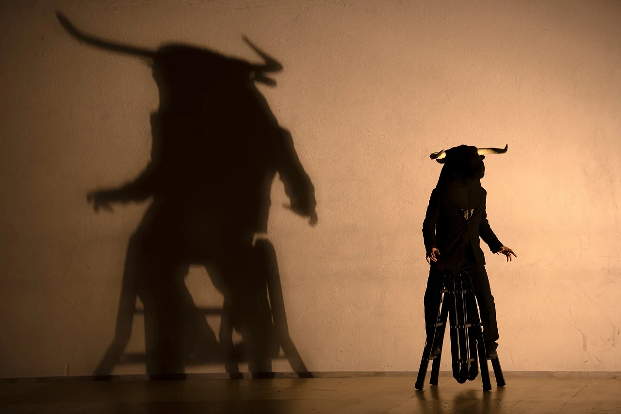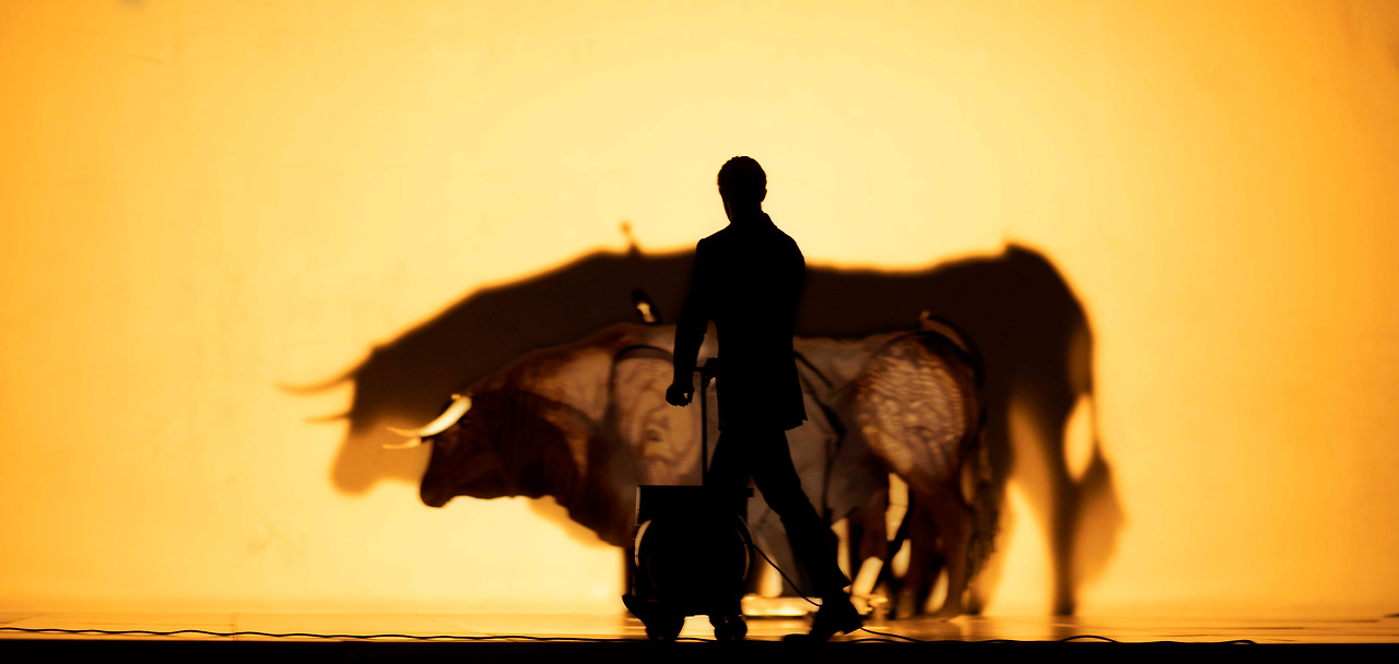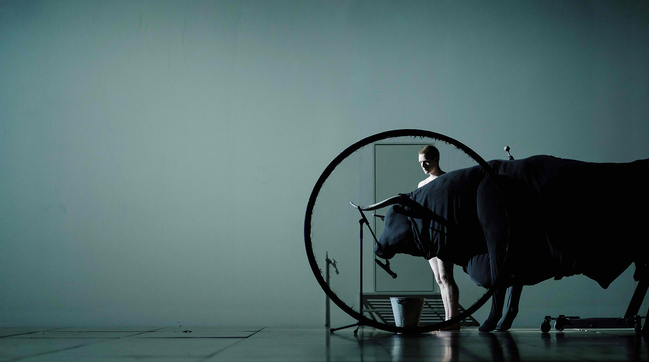 이번 작품 역시 파파이오아누식 하이브리드 상상 모음집이었다. 검은 수트를 입은 무용수와 나체 무용수들이 결합해 남성과 여성이 복합된 몸의 형태를 만들어내고, 조명과 실루엣이 교차하며, 형광등과 사다리, 검은 침대 프레임과 커다란 돌덩이와 같은 조형이 나타났다 사라지고, 여기에 검은 소와 물이라는 신화적인 모티브가 접목된다.