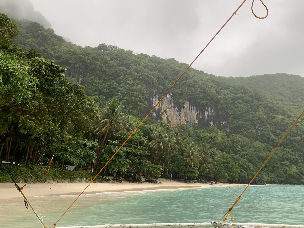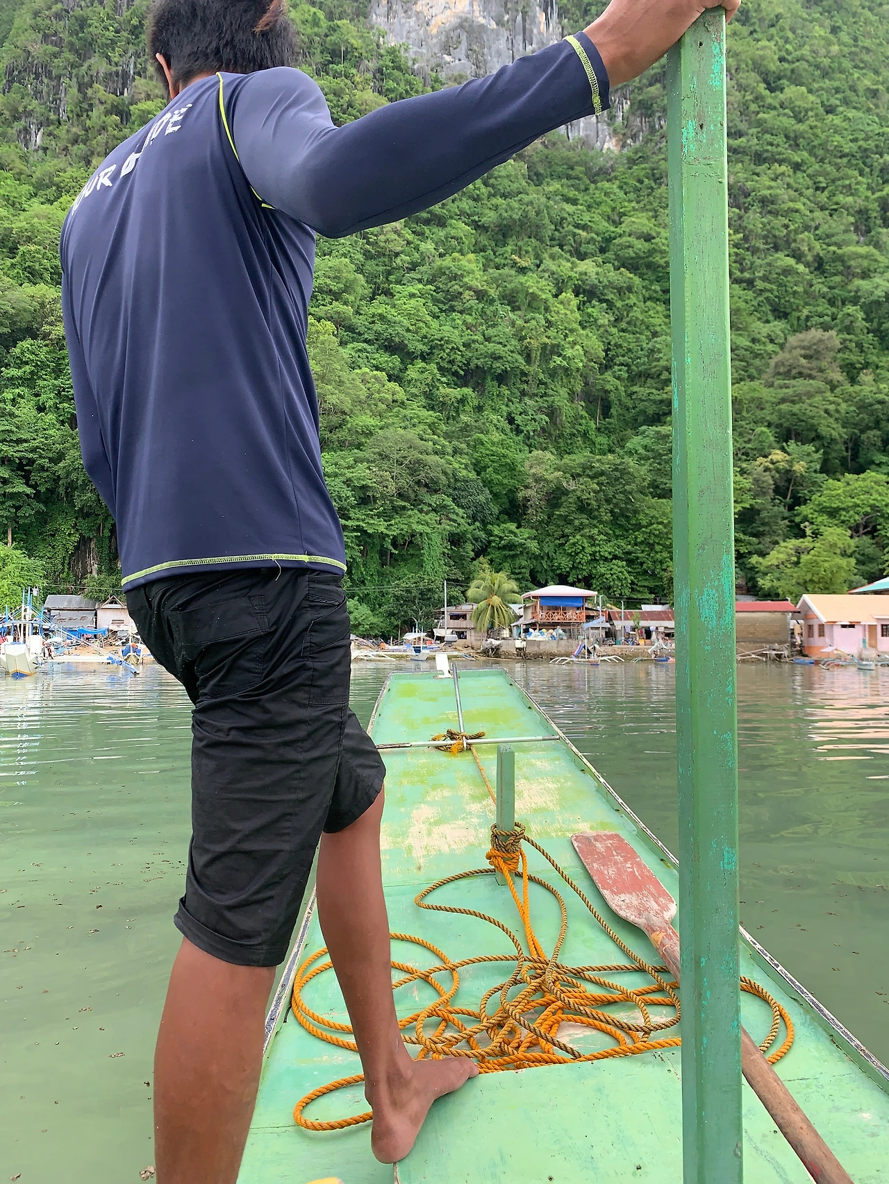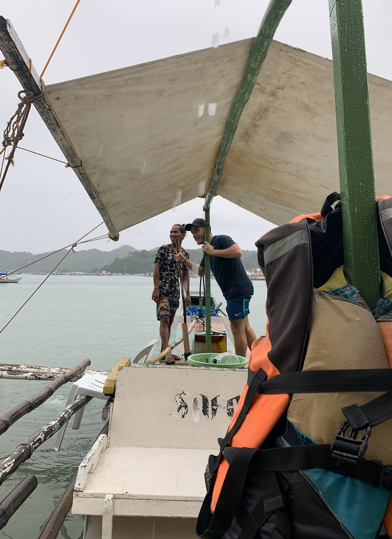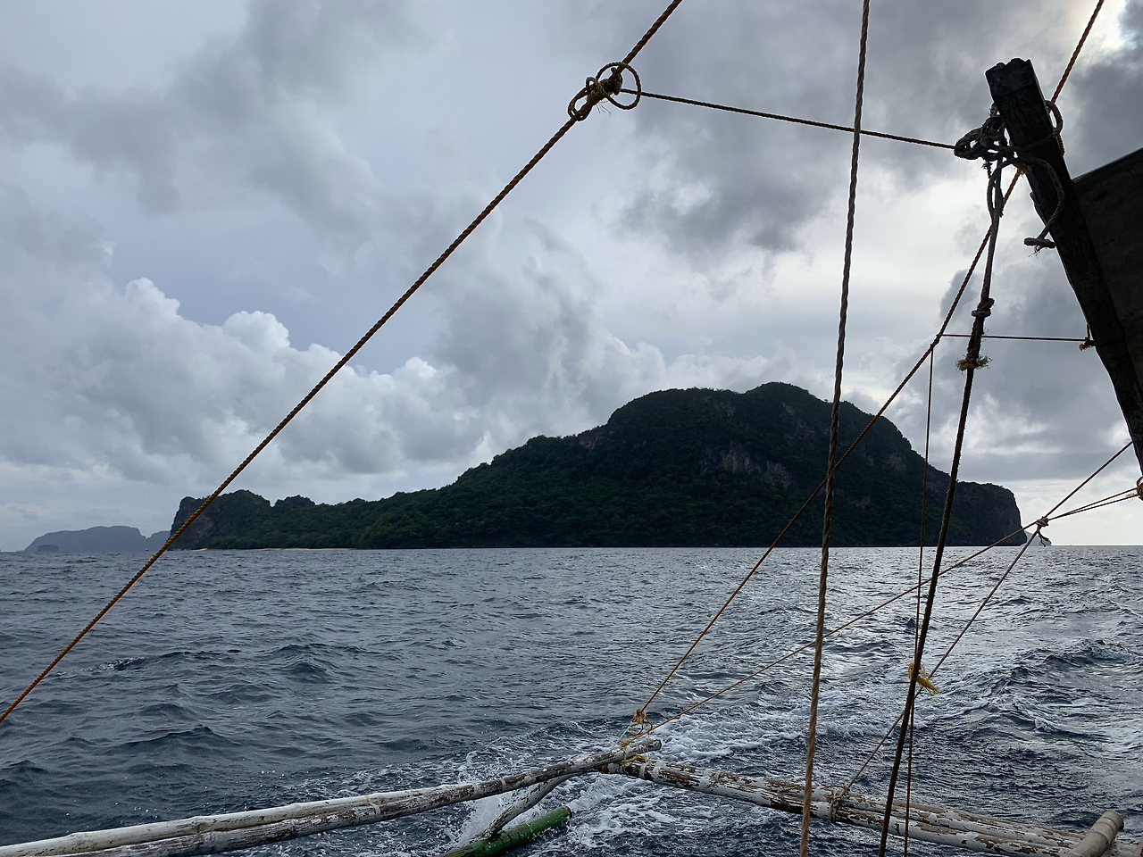 바다 안개를 헤치며 나간다. 저 멀리 희미하게 육지가 보인다. 엘 니도 오던 길에 죽은 나무를 찍었던 그곳이다. 육지에 있었던 우리가 이젠 바다에서 육지를 본다. 비는 계속해서 내리고 뒤뚱뒤뚱 대나무 지지대가 균형을 잡으려 애쓴다.