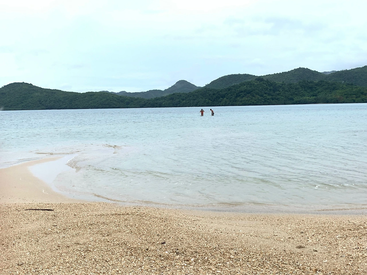 푸하하. 함께 웃는다. 여긴 사람들이 잘 모르는 곳이라며, 진짜 특별한 사람들만 데리고 온다는 말을 덧붙인다. 믿어 보자. 저 멀리 큰 섬과 육지 사이, 사막 속 페트라Petra가 나타나듯 홀연 풀도 나무도 없는 모래섬이 나타난다. 영화 <캐리비안의 해적>에나 나올 법한 진짜 모래섬. 다른 점이라면 비에 젖어 투명하지 않은 모래와 ‘사각사각’ 보다는 ‘첩 첩’에 가까운 그것의 질감. 둘만의 시간을 보내라며 우릴 내려준다. 해만 떴으면 환상적인 경치일 텐데. 비 피할 나무도 없고 즐길 파도도 없는 오늘은 무엇을 할까요?