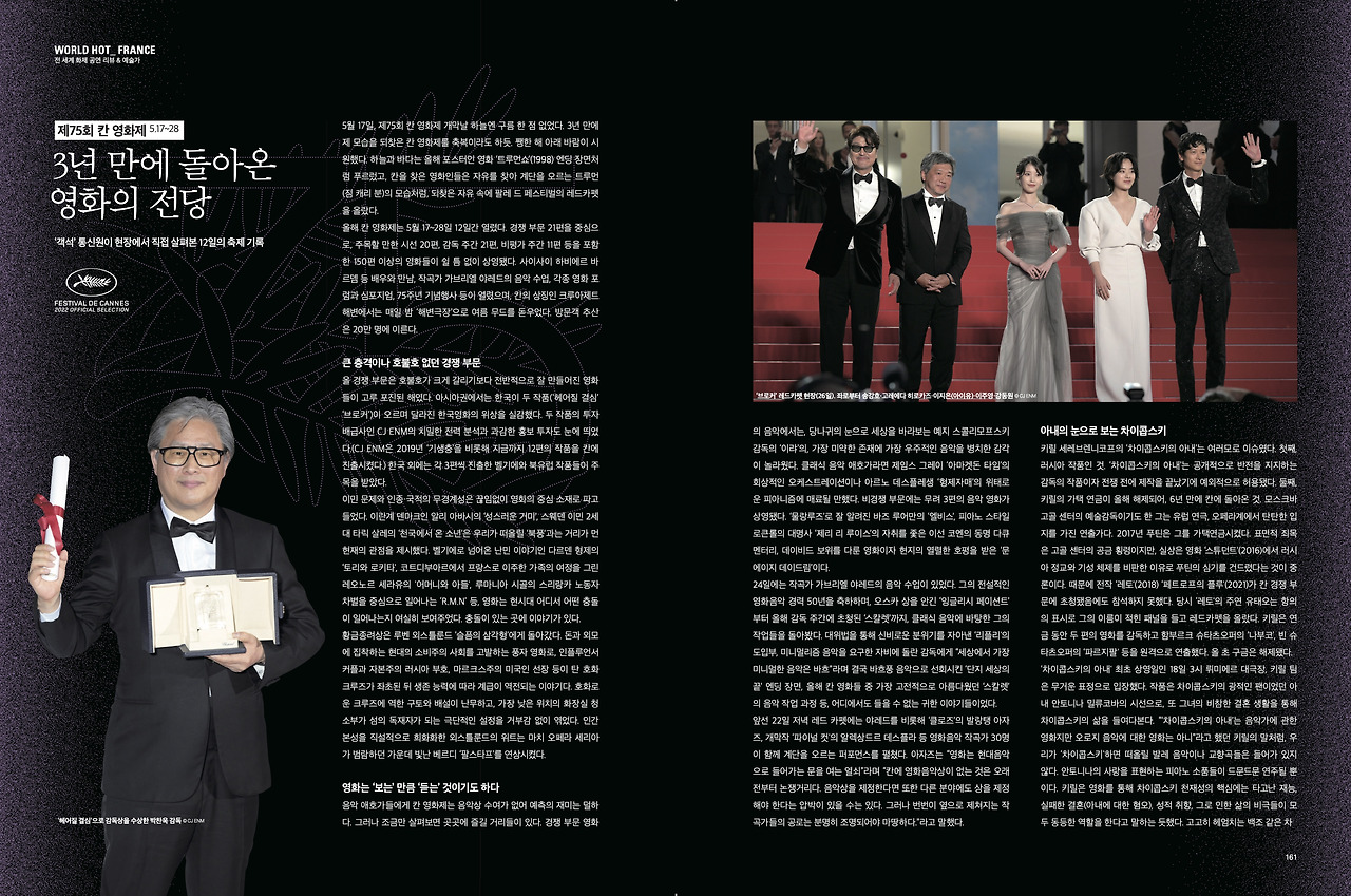 음악 애호가들에게 칸 영화제는 음악상 수여가 없어 예측의 재미는 덜하다. 그러나 조금만 살펴보면 곳곳에 즐길거리들이 있다. 특히나 내로라하는 작곡가들의 영화음악들을 최초로 듣는 것만으로도 큰 가치가 있다.