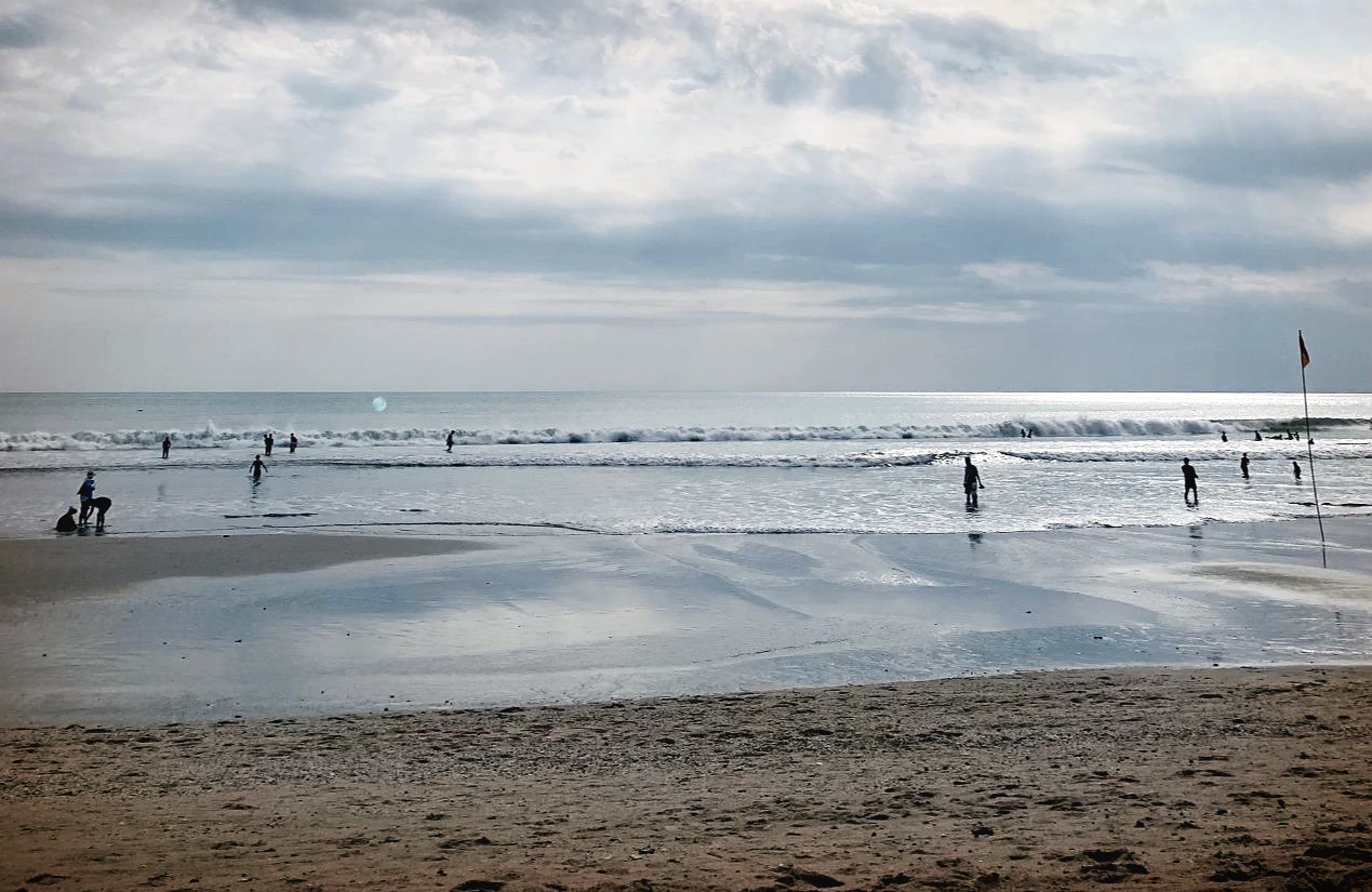 사람이 많다. 여유로운 분위기는 아니지만 긴 모래사장이 트인 느낌을 준다. 파도는 얕지만 길게 뻗는다. 주로 밖에서 바다를 바라보거나 발을 적시는 사람들이 많다. 몇몇 그룹이 서핑 레슨을 받는다. 라이프가드 옷을 입은 아저씨가 다가오더니 서핑 레슨을 받으라고 권한다. 한 사람당 200,000루피아, 우리 돈으로 17,000원 정도. 와이 낫Why not? 고민을 하는 사이 조금 깎아 주겠단다. 그런데 파도가 없다. 파도가 없는데... 어떻게 서핑을 한담? 다른 사람들을 보니 골반까지 오는 얕은 바다에서 첨벙첨벙. 이건 아니지. “파도가 이렇게 없는데 어떻게 서핑을 해요?” 사실 여긴 아침 파도가 좋고 오후엔 밀물이 들어와서 별로란다. 예약을 잡아 주겠다며 내일 아침에 오는 건 어떠냐 묻는다. 차라리 처음부터 솔직하게 얘기해 주지. 모르는 사람이면 그냥 서핑할 뻔하겠다.