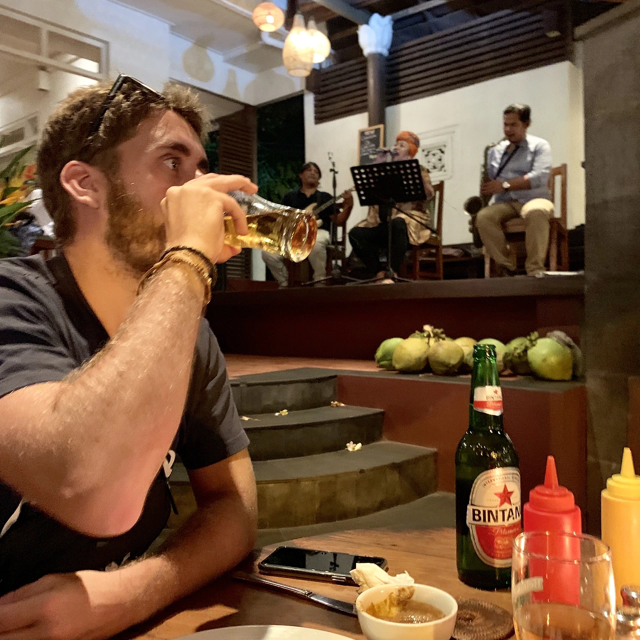 우붓 마켓을 가로질러 피상적인 휴양의 온상 고급 여행자 레스토랑에 들어선다. 소울풀한 여가수 목소리에 홀린 듯이. 그래. 이것도 발리의 한 모습. 창문 없이 오픈된 레스토랑엔 촛불이 일렁이고 바깥으론 스쿠터 경적이 빵빵댄다. 메뉴판을 보던 니콜라스가 매일 자기가 쐈지만 오늘은 자기가 특별히 ‘카드로’ 쏘겠다고 한다. 매번 싼 음식만 찾을 순 없지 않냐며. 우붓 왕궁에서 전통 공연 볼 돈 4배나 더 내고 먹고 마신다. 길에선 지나가던 연인 한 쌍이 음악에 맞춰 춤을 춘다. 우리도 들썩들썩. 왕궁에선 세상 진지하던 우리는 음악과 맥주에 금세 즐거워진다. 뭘 더 아는 척하겠어, 마시기나 마시자. 우리도 그냥 사람이다. 왕도 사람이고 나도 사람이고 니콜라스도 사람이고 우리 모두 사람.