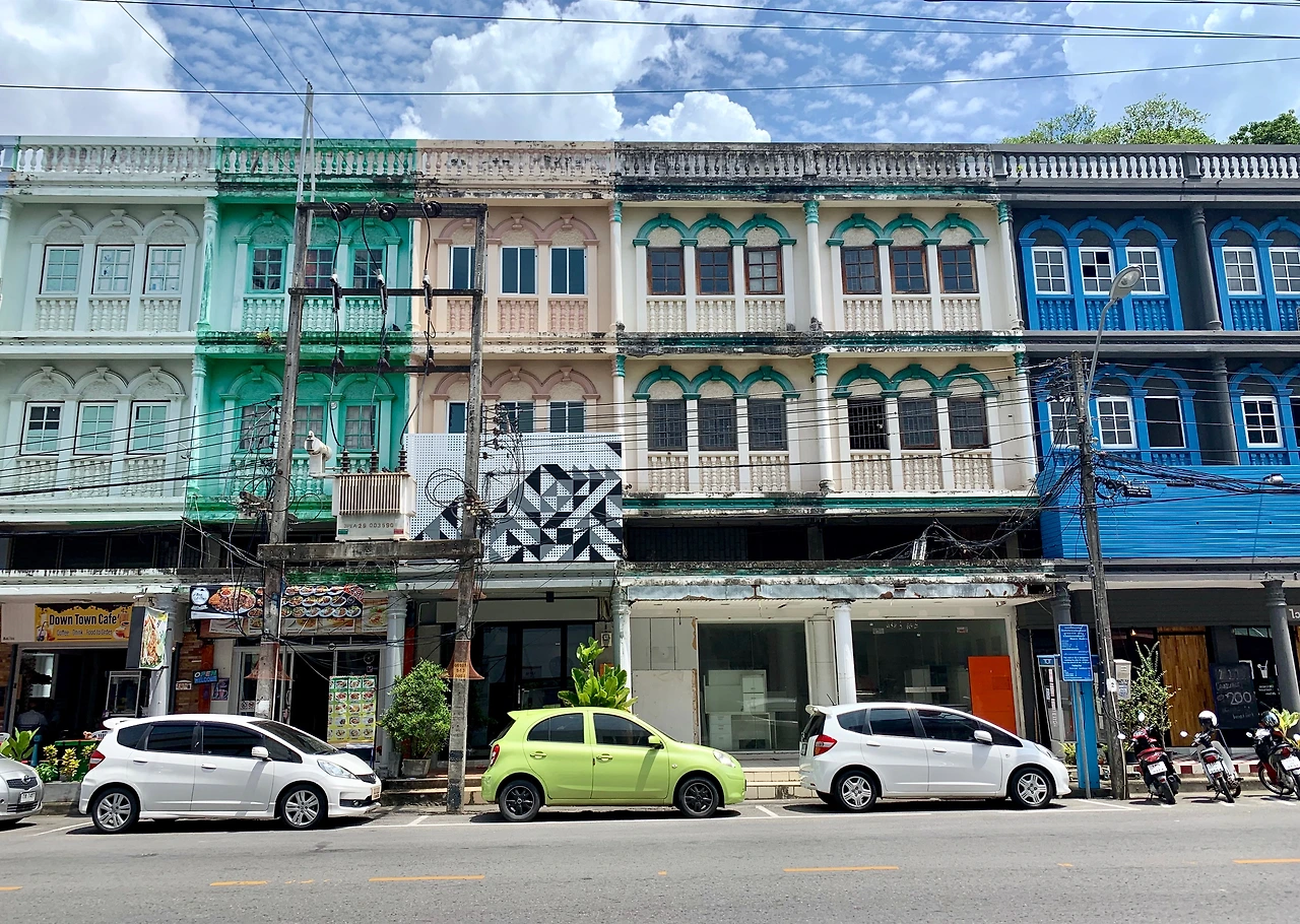 푸껫 구시가는 우리나라 90년대 한참 유행하던 근교의 작은 관광 도시 같은 기분이다. 휑하게 넓은 도로에 두꺼운 느낌의 흰색 건물들, 낮은 상가엔 엄마 세대 의상실에 있었을 법한 마네킹이 웨딩드레스를 입고 있다. 다른 점이라면 건물 전면을 덮은 간판들과 가지런하게 정렬된 엄청난 전깃줄들. 그 거대함이 이곳이 소비하는 도시임을 짐작케 한다. 화장실이 급한 니콜라스를 따라 들어간 오래된 호텔은 향수를 자극한다. 체리색 몰딩과 금색 기둥, 그 사이로 비치는 어항과 묵직한 테이블들. 너도나도 국내 여행을 다니기 시작하던 80년대 말 90년대, 물 좋다는 곳에 들어선 잘 나가는 온천 호텔 건물 같은 느낌이랄까.