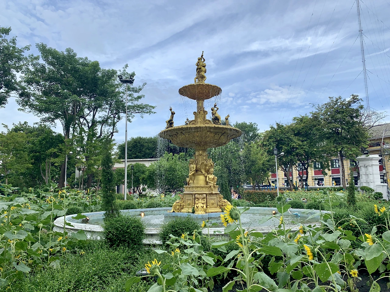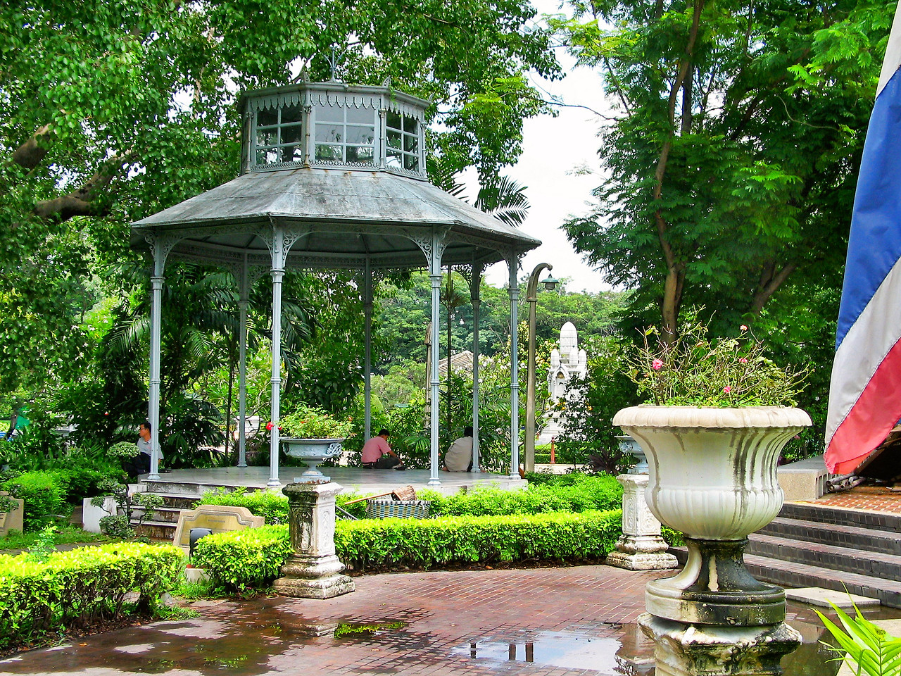 사란롬Saranrom 공원을 가로지른다. 이 공원은 1874년 라마 5세가 왕자들의 거처로 지은 사란롬 궁의 정원이었고 1960년 대중에게 개방됐다. 둘러보니 곳곳에 유럽풍이 물씬 난다. 서양식 교육을 받고 자랐으며 유럽의 문화를 선망하던 라마 5세가 집권 후 처음 세운 궁이자, 건축 역시 영국 외교관Henry Alabaster에게 위임했기에 그렇다. 우리가 앉았던 정자도, 나팔 부는 아기 천사들이 조각된 황금 분수도, 가는 창살로 유려한 곡선을 그린 입구도 근대기 태국의 분위기가 풍긴다.