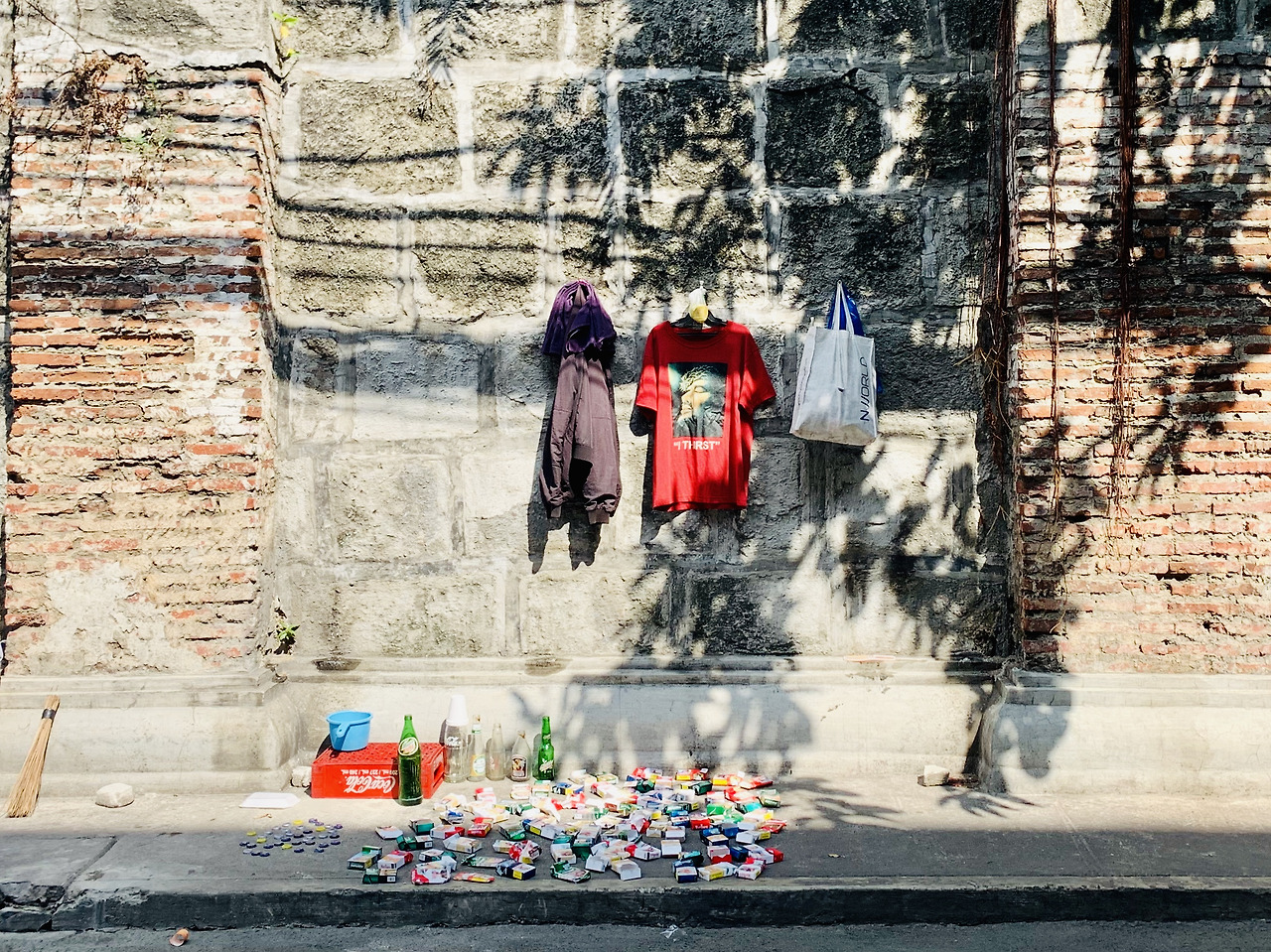 가장 인기가 많다던 산 아구스틴 교회San Agustin Church에 가 본다. 내부를 보려면 입장료를 내야 하고, 앞마당이 주차장이라 오고 가는 차들 통에 건물을 음미하기 참 어렵다. 인트라무로스의 웬만한 볼거리는 입장료를 각각 내야 하는데, 우린 돈 내고 보는 요새나 성당보다 외려 곁가지 곁골목으로 들어 주민들의 삶을 느끼는 게 즐겁다. 가장 기억에 남는 건 길거리 노숙자의 담뱃갑 컬렉션. 배열한 구도가 보통이 아니다. 머리 큰 목상들보다 훨씬 감각적이라 느낀다. 누군가에겐 그저 빈 말보로 갑이 누군가에겐 무엇보다 소중한 영감이고 재산이 되었다. 매일 작은 싸리비로 요리조리 쓸며 아끼겠지. 슬쩍 미소가 난다. 니콜라스에게 가장 인상적인 곳이 어디냐 물었더니 불이 날 듯 엉켜 있던 전깃줄이란다. 우린 중세 도시에 왔지만 현재를 본다. 해가 진다. 동네 아이들은 엄마가 밥 지을 동안 골목골목 뛰어나와 술래잡기를 한다. 엉킨 전깃줄 아래서.