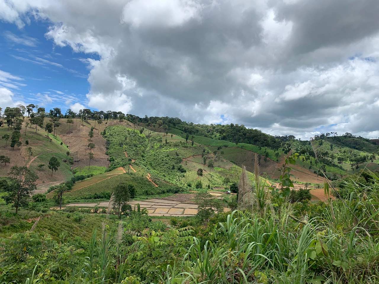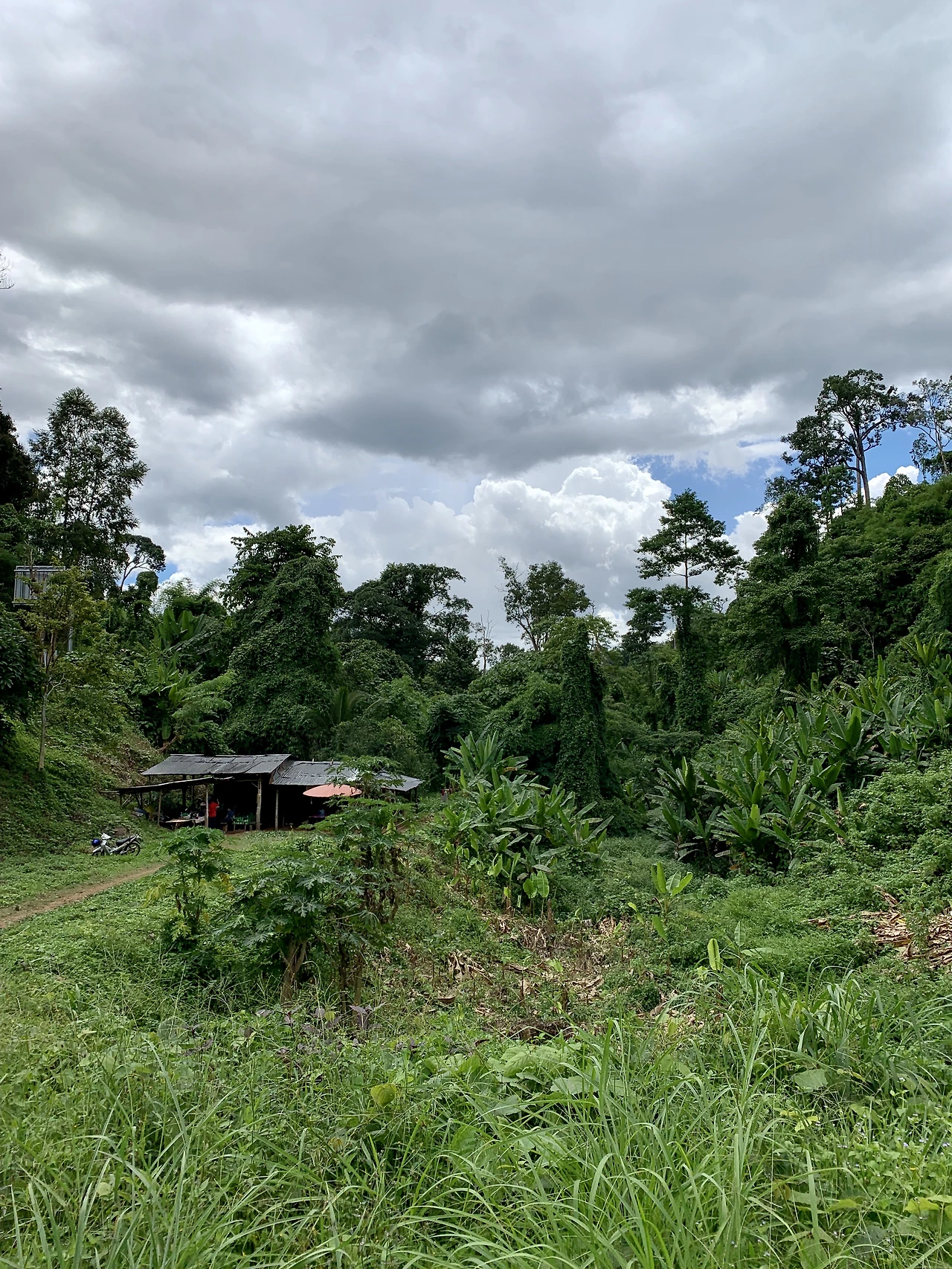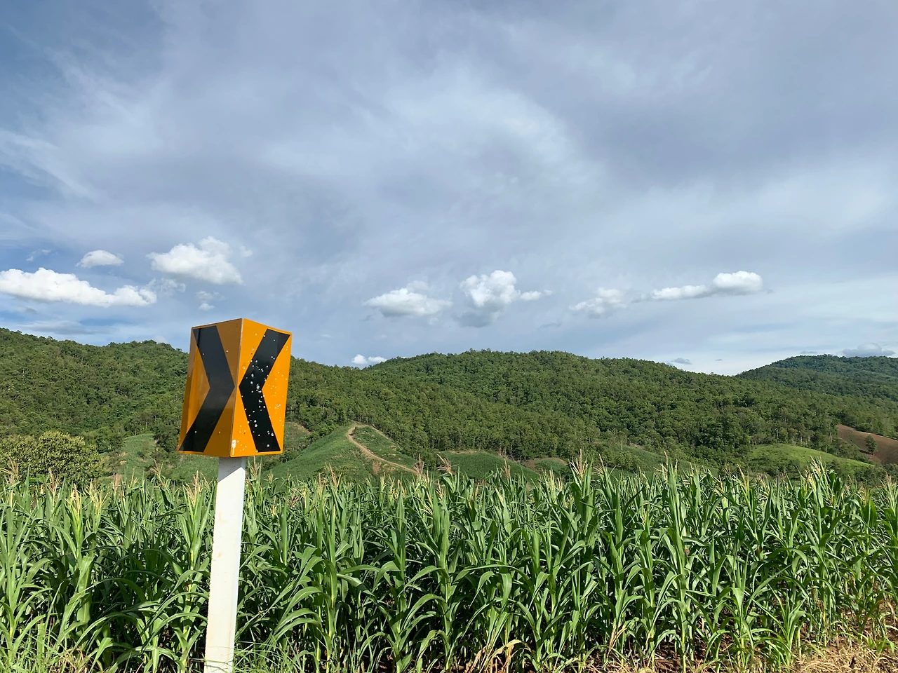국립공원은 비가 많이 왔는지 후덥지근한 정글이 되어 있었다. 괴물의 입속으로 들어가듯 배배 꼬인 덩굴 식물들을 지난다. 이제는 국경을 따라 북쪽으로 올라갈 차례다. 갈림길에서 시리낏 댐이 있는 왼쪽으로 튼다. 구름이 멋들어지게 끼었다. 아주 낮게, 두꺼운 솜을 뜯어놓은 것 같다. 평지에는 자그만 논, 야트막한 뒷 언덕엔 밭이 이어진다. 화전을 일구나 보다. 태국인들은 예로부터 계절 사이에 밭을 태우곤 했다. 옥수수 밭은 이곳의 골짜기에도 잠식해 있다. 태국인들이 이다지도 옥수수를 많이 먹었던가? 도종환이 쓴 <옥수수밭 옆에 당신을 묻고>와 같은 일은 태국 북부에서는 있을 수 없지 싶다. 옥수수밭이 너무 많아서 당신을 찾을 수가 없는 더욱 슬픈 이야기가 되고 말 테니까. 밭이 이어지는 단조로운 풍경에 졸음이 몰려온다. 모터바이크 뒷좌석에서 졸리다는 건, 흔한 일이 아니다. 운전자가 운전을 잘한다는 뜻이다.