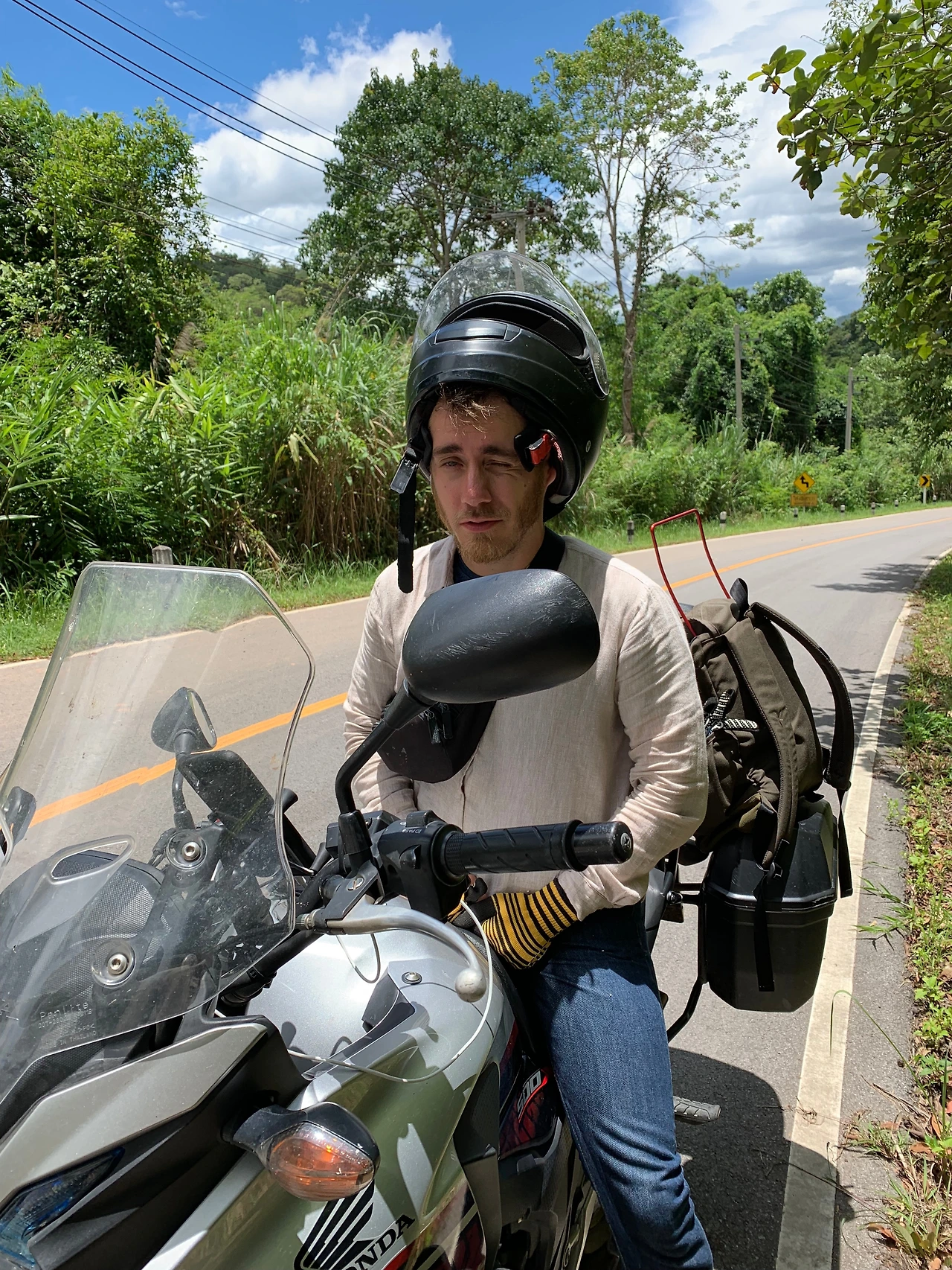 나는 안다. 구글 맵이 알려주는 시간에서 최소한 1시간 30분을 더해야 한다는 걸. 잠시 쉬거나 기름을 넣거나, 밥을 먹어야 하니까. 특히나 모터바이크 초보인 나는 정기적으로 엉덩이를 쉬어야 한다. 아니면 엉덩이가 안장에 눌려 네 쪽이 날 거다. 그러므로 페리 타는 길을 간다면 9시간이다. 9시간이라. 그 정도면 치앙라이도 갈 시간인데... 물론 고속도로를 탔을 때. 고민하는 사이 “제발, 제발!” 올망한 그의 눈빛에 못 이겨 승낙하고 만다. 피곤하긴 하지만… “한 시간. 까짓것 가 보지 뭐!” 그때까진 몰랐다. 이 결정이 오늘 얼마나 위험한 길을 가게 만들지.