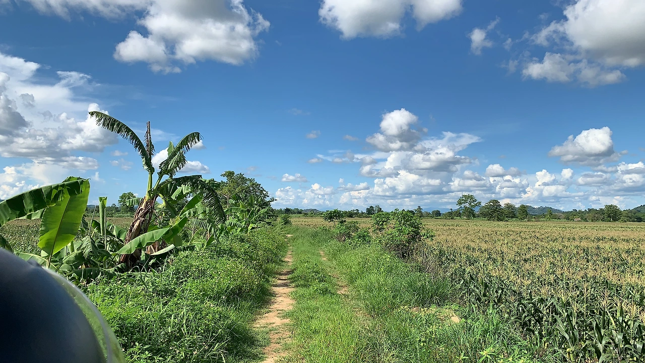 오늘은 내가 루트를 정하는 날이다. 치앙라이에서 북쪽으로 70km 정도 떨어진 골든 트라이앵글까지 콕 강을 따라가 보기로 한다. 서쪽 미얀마의 산에서 발원한 콕 강은 태국 북부에 커다란 반원을 그리듯 내려와 치앙라이를 거쳐 오른 뒤, 골든 트라이앵글 근처에서 메콩강과 합류한다. 콕 강은 직선 정비를 하지 않아 구불구불하다. 아니, 이곳뿐 아니라 태국의 강들이 대개 그렇다. 강변엔 논이 이어지거나, 수상가옥이 있고. 콕 강은 대부분 논을 낀다. 지도엔 강둑길이 보이는데 자꾸만 돌아가라고 말하는 앱이 얄미워, 강변 중간중간에 여러 포인트를 찍어 나만의 루트를 만든다. 시작은 파란 표지판에 금색 글씨가 적힌 농촌 도로Rural Roads다. 그동안 봐왔던 흰 바탕에 검은 글씨 고속도로 표지판과는 조금 다르다. 닦은 지 얼마 안 된 새 것이다.