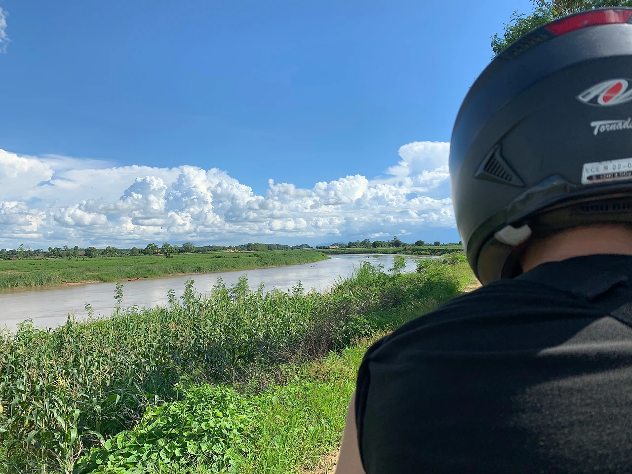 결국 모터바이크는 반쯤 쓰러지고 나서야 제자리를 찾는다. 니콜라스의 운동화는 진흙 범벅이 되었다. 우리는 오늘을 논두렁 대참사의 날로 명명한다. 다시 웅덩이를 넘고, 무성한 풀들을 지나 강변을 탈출한다. 내가 도운 것은 없지만, 그렇다고 딴 데 정신을 팔거나 사진을 찍지는 않았다. 그냥 온 마음 다해서 니콜라스가 잘 헤쳐나가길 빌었다. 내 마음도 편하다. 다리 위에 모터바이크를 세운다. 이 강이 내가 따라가고 싶었던 콕 강이구나.