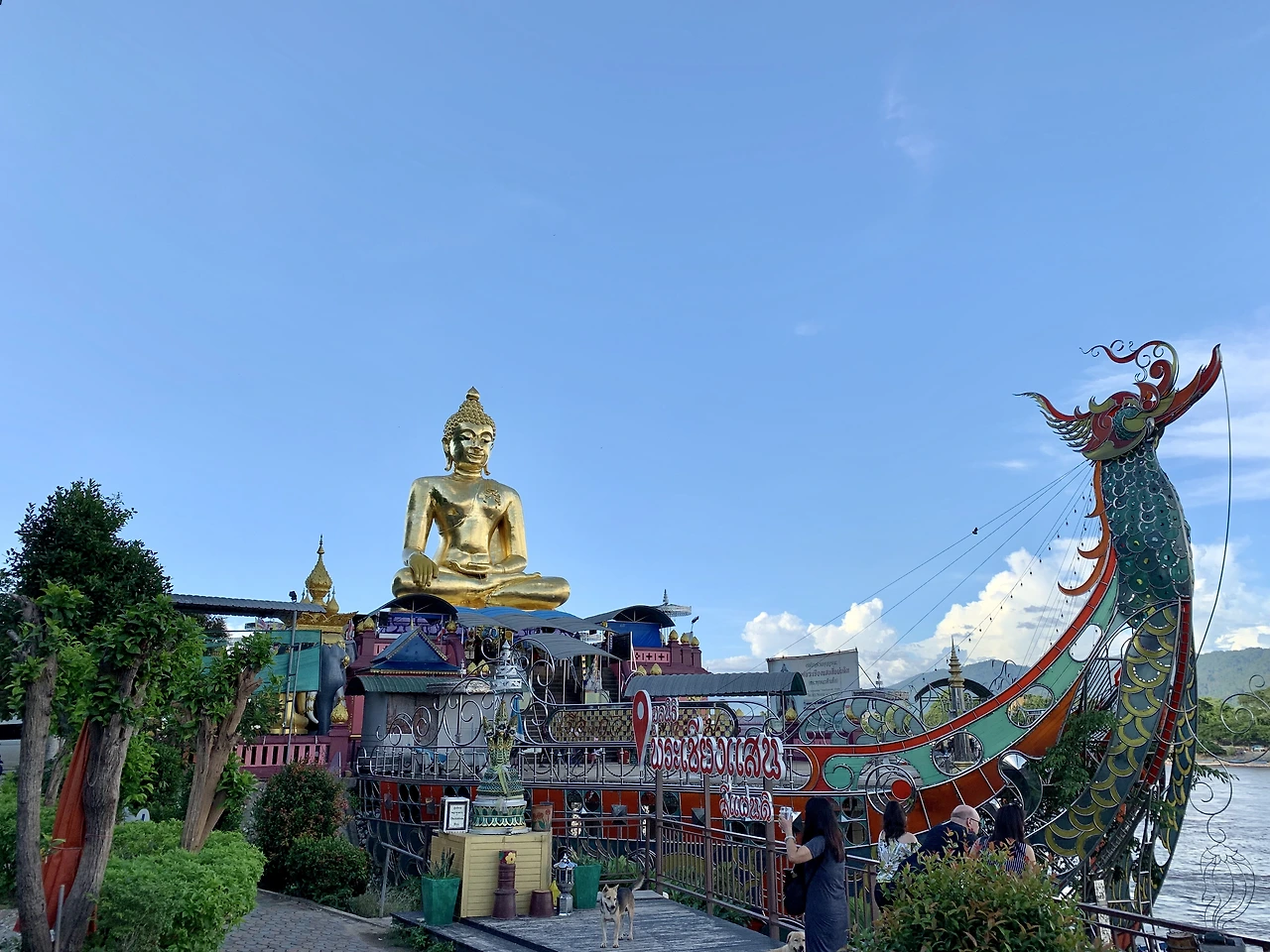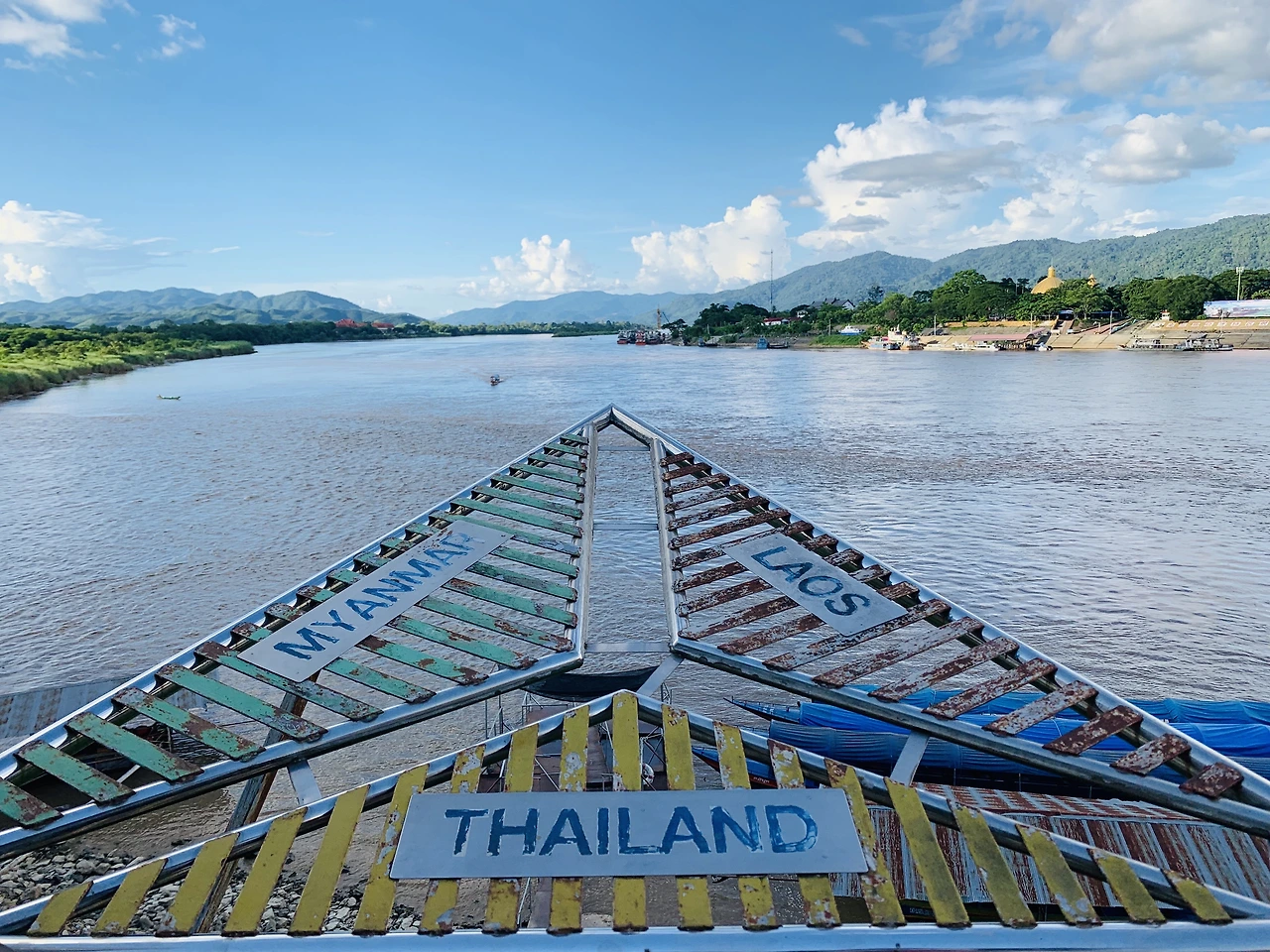 골든 트라이앵글은 세 나라를 적나라하게 보여주고 있었다. 우리가 서 있는 태국 땅엔 거대한 금부처님이 강을 바라보고, 화려한 조형물이 강가를 꾸며놓았다. 메콩강 오른편 라오스엔 커다랗고 못난 네모 건물들, 카지노들이 늘어서 있고, 왼편 미얀마엔 숲이 우거져 있다. 미얀마의 숲은 비밀이 많아 보인다. 그것이 아편이든, 무기 밀매든, 레지스탕스든. 겉으론 이따금 관광객이 탄 보트만이 오갈 뿐, 한없이 조용하다. 타일랜드, 미얀마, 라오스가 적힌 삼각 표지판 앞에서 나는 말한다.