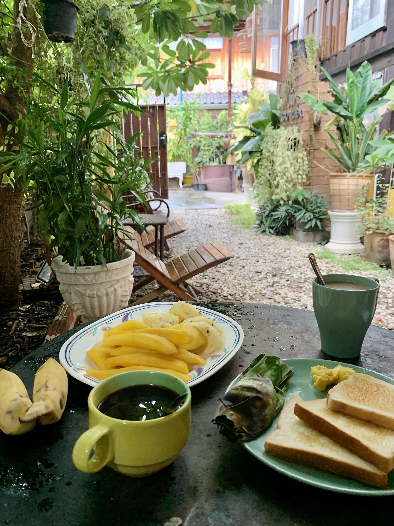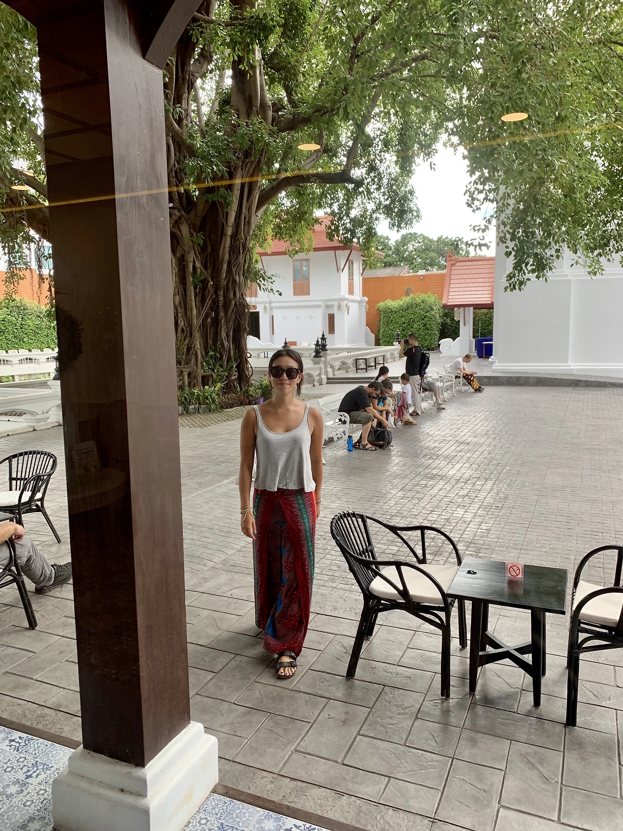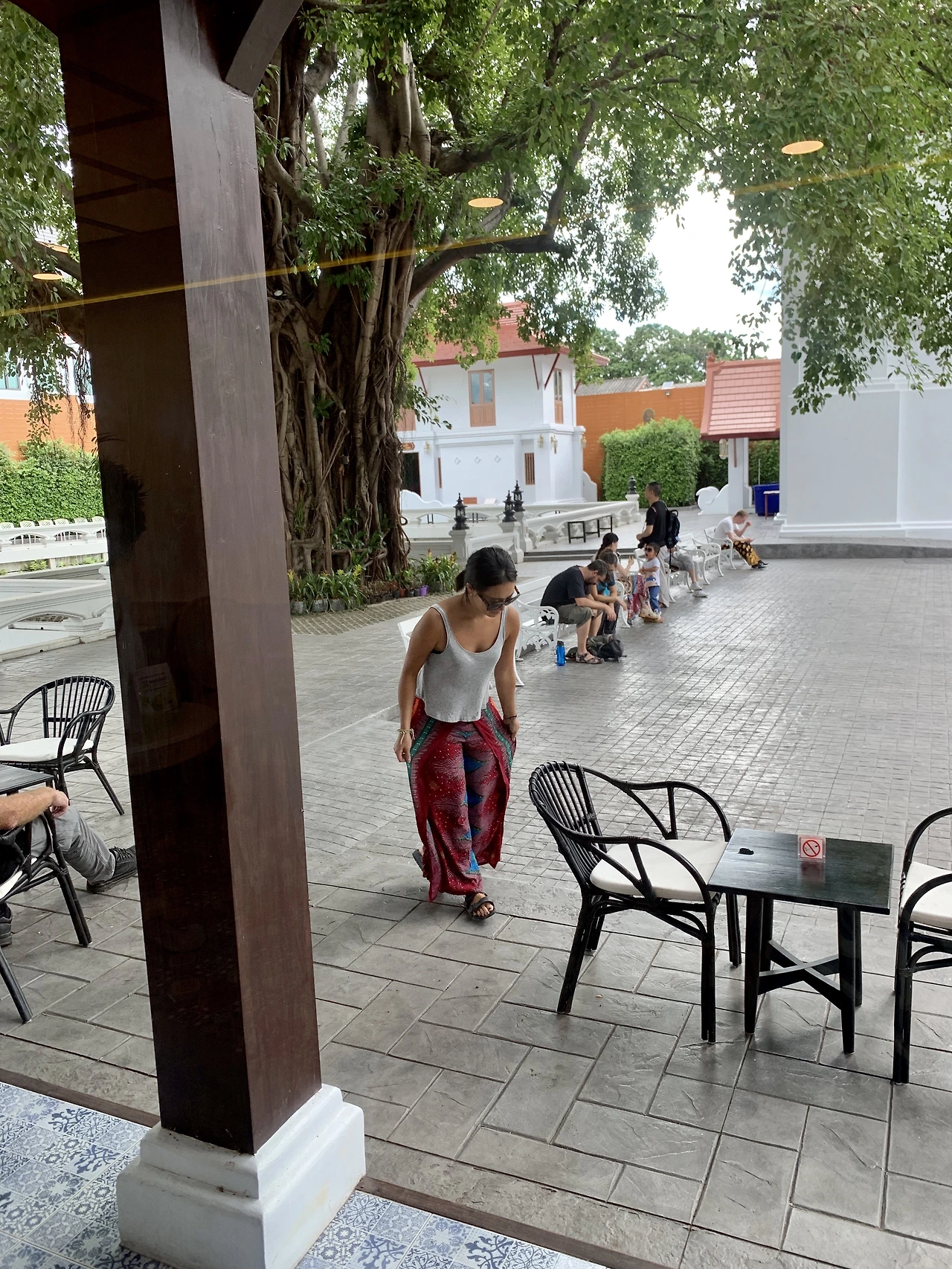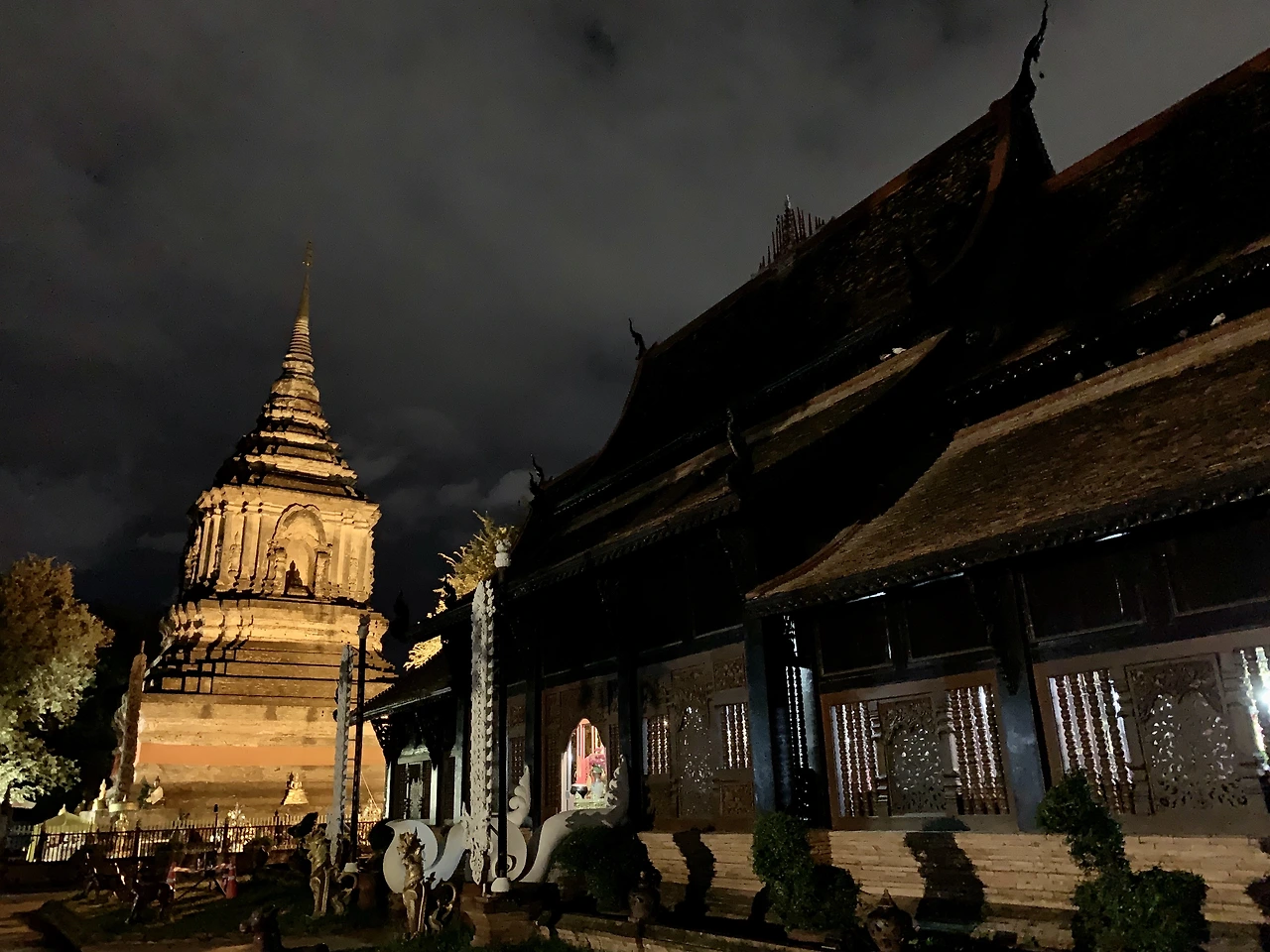 사당부터 천천히 돌아보려는데 이곳도 여성 출입 금지다. 니콜라스 혼자 다녀오고선 화려한 벽화가 있고 가운데 금기둥 안에 작은 부처님 입상Sao Inthakin이 있더라 전해준다. 태국에선 도시를 지을 때 도시의 영혼이 되는 ‘기둥Lak Muang’을 도시 중심에 세운다. 치앙마이의 기둥이 여기 있구나. 그러나 우리는 기둥보다 더 묵직하게 솟은 고무나무에서 눈을 떼지 못한다. 태국 사람들이 영혼이 깃들어 있다고 믿는다. 양 나(Yang Na, 학명 Dipterocarpus alatus)라고 불리는 고무나무다. 기둥은 도시를 지키고, 나무는 다시 기둥을 지키며 겹겹이 도시를 보호하고 있다. 사당과 나무는 란나 왕국이 버마에 정복당하고 버려진 뒤, 1800년 톤부리 왕국(태국의 전 왕조)에 흡수되며 독립적인 자치권을 인정받은 것을 기념해 이곳에 세운 것이라 한다. 이렇게라도 란나를, 치앙마이를 지키고 싶었을 것이다.