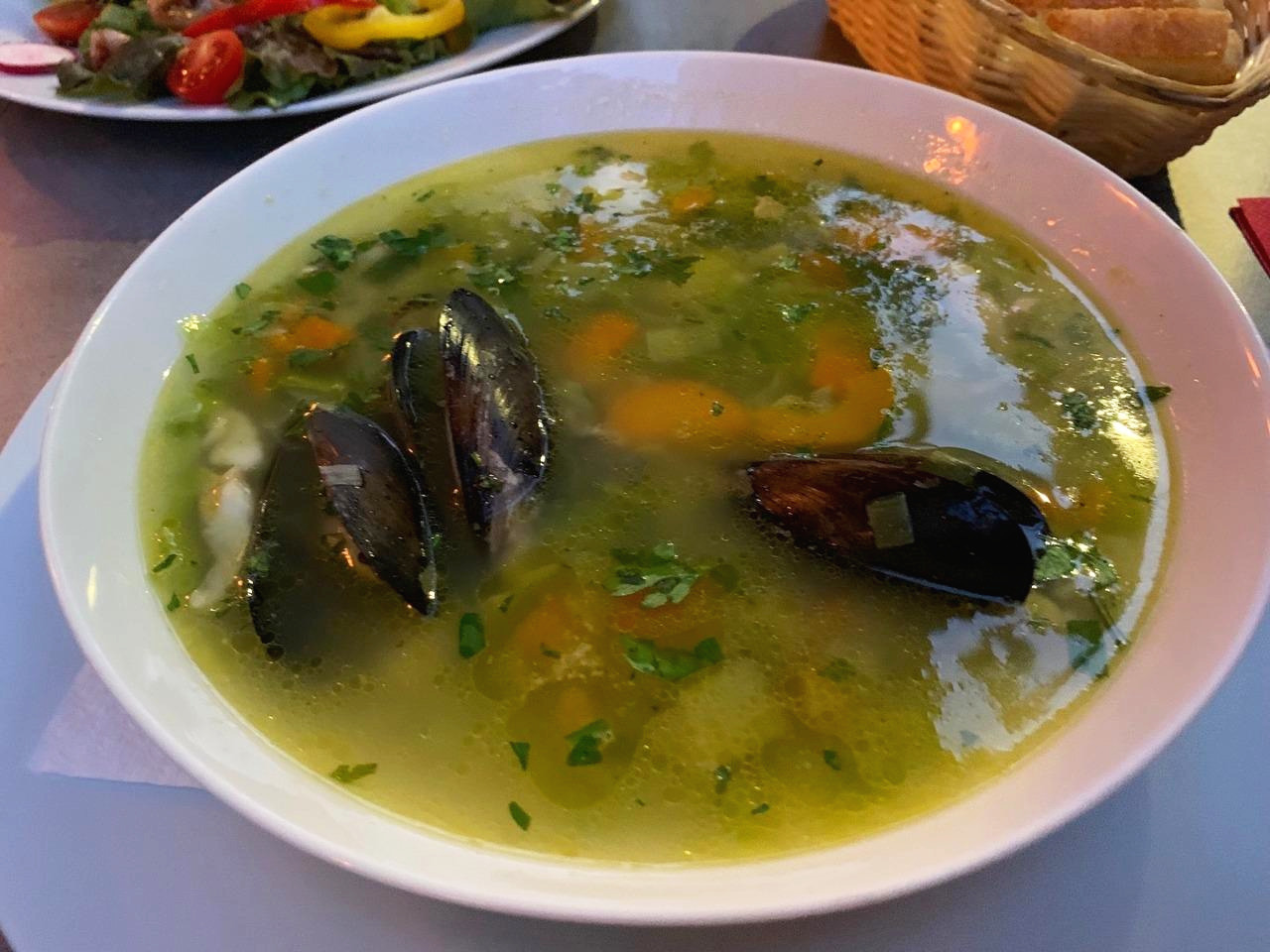 결국 생선 수프, 오징어 튀김 샐러드 그리고 홍합 스튜를 시켰다. 본디 표정만 무뚝뚝했던 듯 그는 테이블 옆을 지나다니며 눈이 마주칠 때마다 (나름의) 미소를 보냈고 가게 이름이 특이하다는 물음에 유래를 설명하며 안내 책자까지 갖다 주었다. 가게 이름 Abbazia는 크로아티아의 소도시 opatija라는 곳에서 따왔고 그곳에서 요리를 배운 후에 비엔나에 가게를 열었다고 한다.