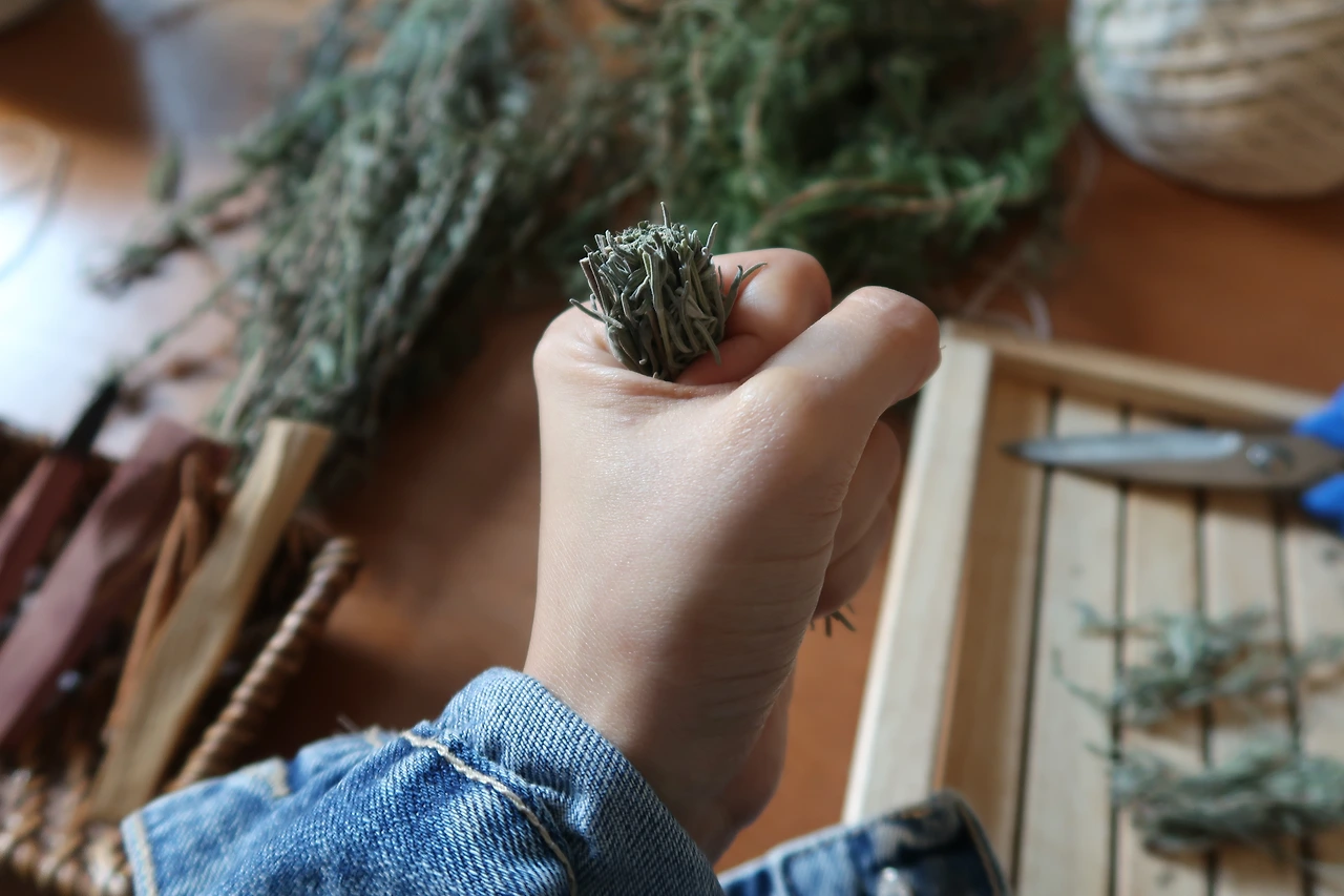 원주민들은 팔로산토를 영혼을 맑게 해주는 신성한 나무라고 믿었다. 요즘 자주 사용하고 있는 팔로산토 나무는 세상에서 가장 향기로운 나무로 불리며 에콰도르 산은 달콤하고 부드러운 향이 나고 페루산은 솔향과 민트향이 난다. 내가 사용하는 나무는 페루산이다. 놀랍게도 스머지 스틱을 태워 경험한 스트레스 감소, 진정, 집중, 공기 정화 등의 효과는 실제로 과학적 근거에 기반을 두고 있다. 단순히 온도, 습도, 조명에 따라 다르다거나 미신이 아니라는 소리다. 자연 그 자체의 향을 코로, 눈으로, 손으로 느끼면서 감히 다른 존재에 정신을 빼앗길 사람이 있을까? 살짝만 스쳐도 방어기제인 듯 강한 향을 내뿜는 로즈메리를 한 움큼 쥐니 손에 송진처럼 끈적한 액이 묻었다. 전혀 개의치 않는다. 오히려 오랜만에 느껴보는 촉감에 마음이 안정된다. '아무 생각도 안 하게 되는 유일한 순간'이다. 스머지 스틱을 만들 때만큼은 평소 생각으로 치열하게 타오르는 머릿속이 잠잠해지고 무작정 빠져든다.