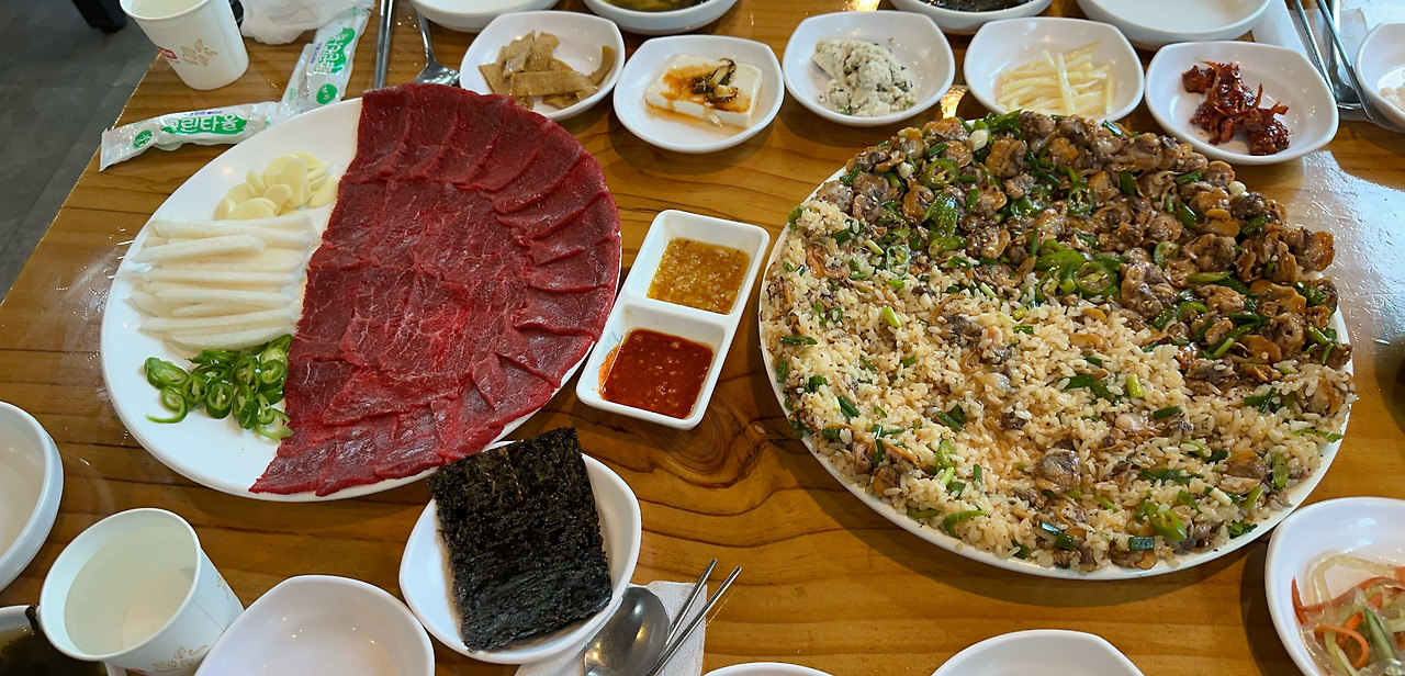 "여기 꼬막 비빔밥이요 - " 말이 끝나기가 무섭게 한 상이 착-착- 차려진다. 뒤이어 등장하는 꼬막 비빔밥은 압도적인 비주얼을 자랑한다. 사진으로 익히 본 모양 그대로였다. 눈이 즐거웠고 강릉 맛집 인증샷을 남겼다면 그걸로 만족스러운 집이다.