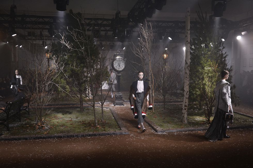 2016년 톰 브라운이 선보인 컬렉션은 우울하고 어두웠던 대공황 시절 뉴욕의 워싱턴 스퀘어 파크를 그대로 재현했다. 메마른 나뭇가지들과 차가운 느낌의 시계탑이 오싹한 분위기를 조성했다. 그의 칼처럼 재단된 샤프한 수트들이 더 돋보였던 이유도 이 때문.