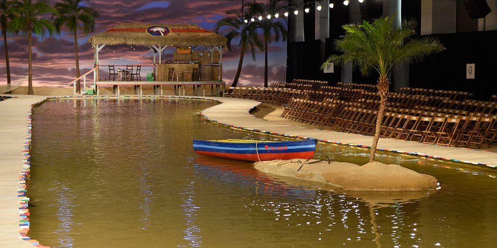 토미 힐피거(Tommy Hilfiger)는 춥고 메마른 도시 생활에 지친 자신을 위해 호수가 있는 열대 섬을 뉴욕 한복판에 제작한다. 한편에는 모래사장과 야외 바가 있는 이곳에 지지 하디드 등의 탑모델들이 함께 호수를 가로질러 첨벙거리며 워킹했다.