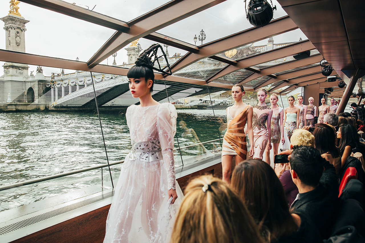베트남 출신의 디자이너 제시카 민 안(Jessica Minh Ahn)은 센 강을 항해하는 유람선으로 관객들을 초대했다. 수 십 개의 다리 밑을 지나면서 스쳐 지나가는 파리의 풍경과 그녀의 감각적인 쿠튀르 의상들에 취하지 않을 사람이 누가 있을까.