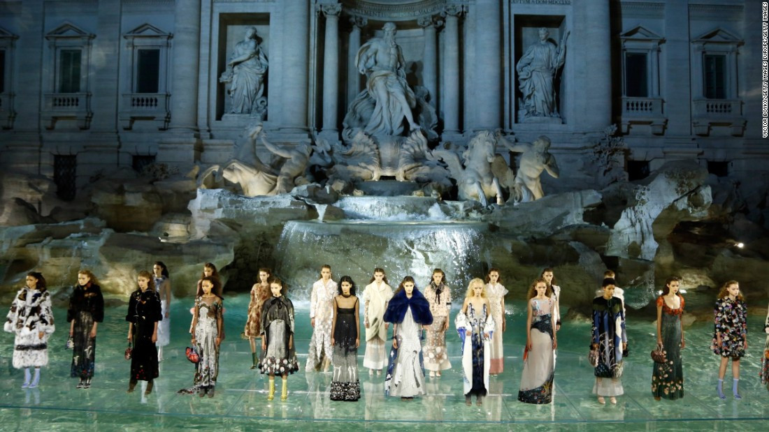 가장 이태리 적인 브랜드 중 하나인 펜디(Fendi)가 유서 깊은 이태리 도시 로마를 2016년 행선지로 택한 건 전혀 놀랍지 않다. 그런데 그들이 한밤중 트레비 분수에 쏟아져 나오는 물 위를 걸어나오는 모습을 상상한 사람들은 거의 없을 것이다. 수 천년의 역사를 자랑하는 건축물과 고요한 밤을 밝히는 환상적인 조명 아래 펼쳐진 이 런웨이는 연일 화제가 되었다. 패션에 관심이 없는 사람들도 푹 빠지게 할 퍼포먼스.