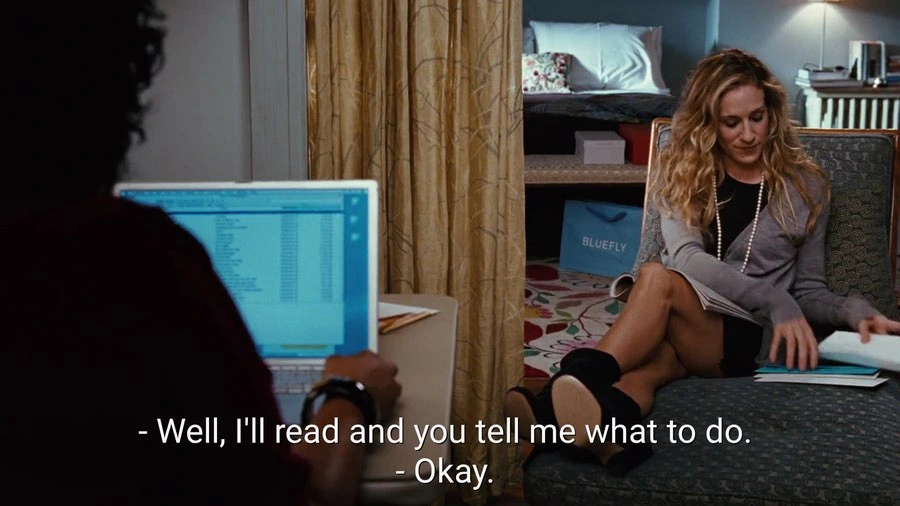 일할 때는 일, 집에 오면 쉬어야 하는 효율적 마인드를 가진 미란다는 밖에서는 프로페셔널한 정장 차림, 집에서는 늘어진 티셔츠나 남자 후디를 입는 반면 캐리는 아까 말한 것처럼 집에서도 진주 목걸이와 화려한 옷들을 포기 못합니다.