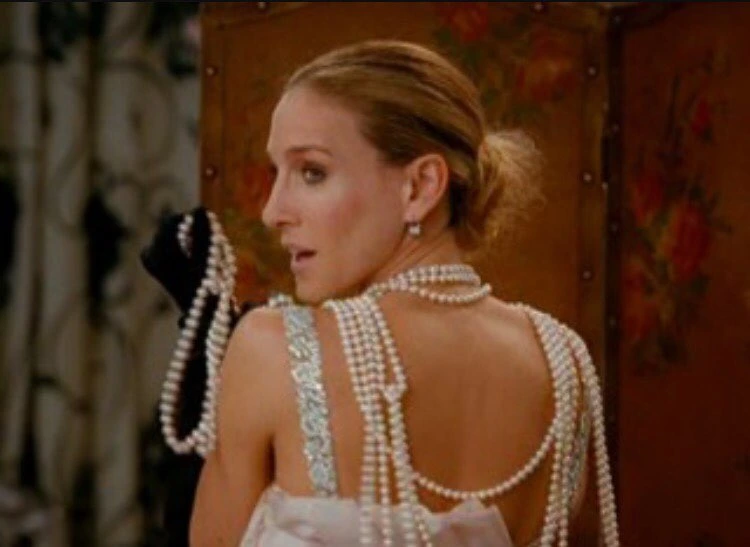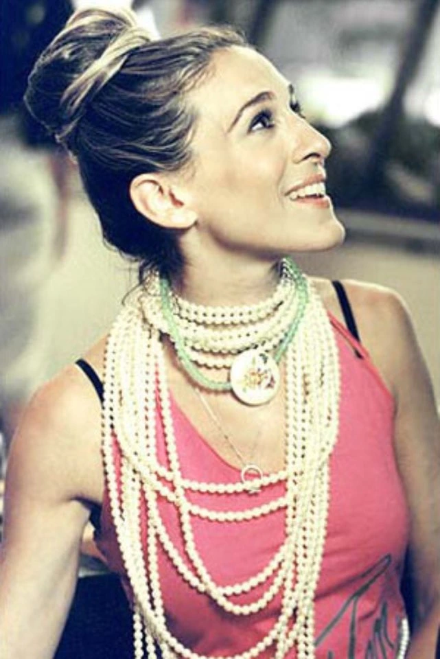 캐리는 진주 목걸이도 아주 좋아하는데요.