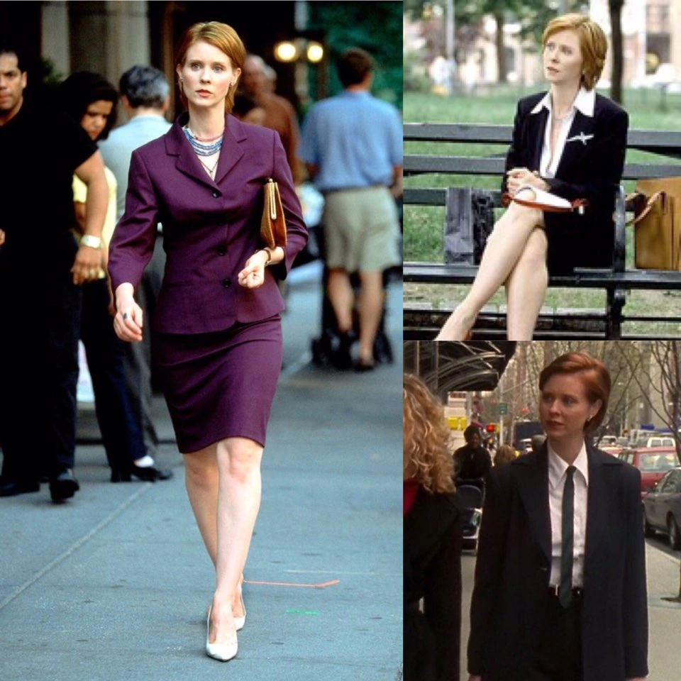 몸매를 과감하게 드러내고 강렬한 원색의 옷과 화려한 액세서리를 즐겨 착용해요. 미란다처럼 카리스마와 프로페셔널함을 드러내야 하는 직업을 가져서 정장도 많이 입지만, 둘의 차이점이라면 보수적인 미란다는 모노톤의 절제되고 깔끔하게 재단된 정장을 선호한다면 자유분방한 성격의 사만다는 비비드한 컬러의 수트에 잘록한 허리라인과 깊게 파인 네크라인을 일할 때도 항상 유지한다는 것.