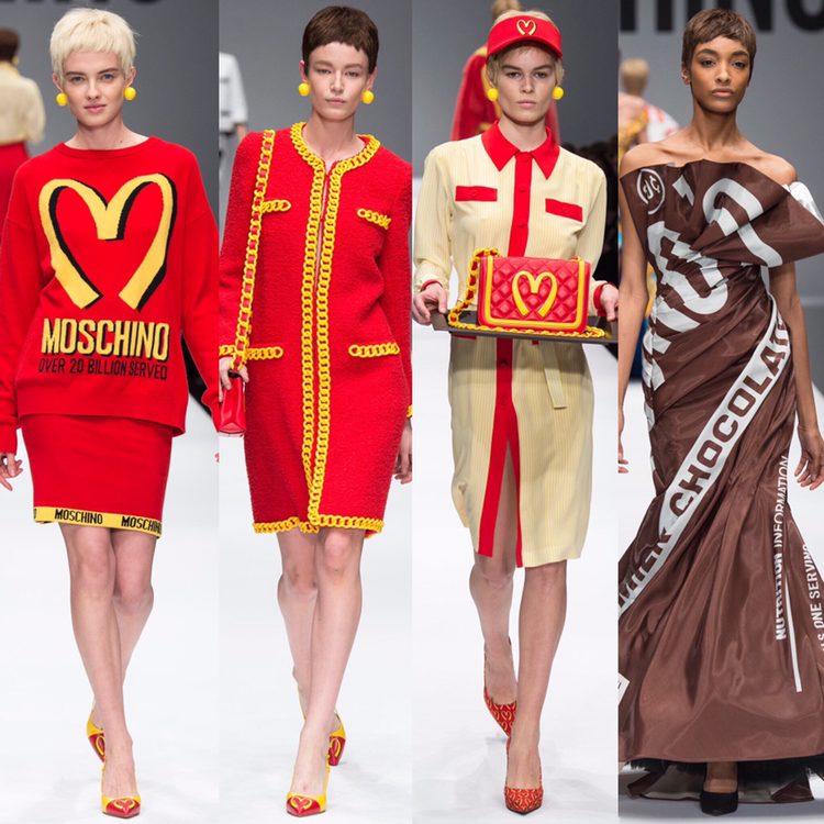 맥도날드와 모스키노의 M을 로고로 변신시키고 맥도날드 점원의 의상까지 등장.
