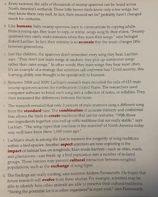 이 글은 참새의 노래에 대한 연구에 관한 글이다. ' 북아메리카에서 들을 수 있는 참새의 노래를 1000년 전에도 있던 노래일 것이다'라는 해석에 대한 이유를 설명하라고 하면 설명을 제대로 하는 아이들이 드물다.