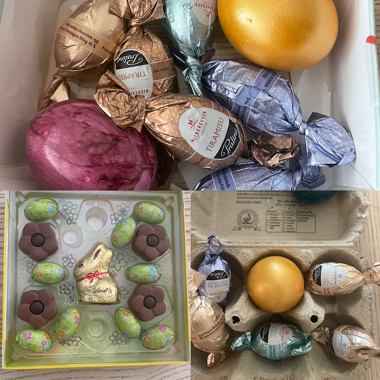 머리 잘라주어서, 고맙다는 작은 메모와 함께 있는 라우라가 놓은 부활절 초콜릿선물이었다.