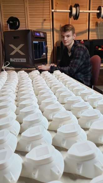 Currently, Barker can produce about 30 masks per day, using printers he’s amassed from Manitowoc Lincoln High School and the Lakeshore FIRST Robotics program, as well as those he already owned or bought using donations from his Facebook fundraising page. He also has volunteers working with him to sew the replaceable N95 and HEPA filters that go into the devices. When two more printers arrive, he’ll be able to increase production to about 50 masks per day.