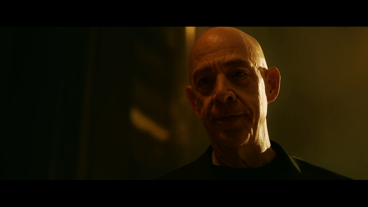 플래처는 연습에 참여하기 직전 앤드류에게 말을 건다. 여기서 주목해야 하는 것은 그의 팔이다. 상대방을 벽으로 몰아세우며, 앤드류의 탈출구(스크린 안쪽)를 차단한다. "나는 여기에 있어야 할 이유가 있다"라는 말을 되뇌게 하는 모습 또한 이미 앤드류가 플래처의 영향력 밑에 들어갔음을 말해준다. 심지어 다음 컷에서 플래처의 얼굴로 가려지는 손. 이렇게 교묘하게 폭력은 은폐된다.