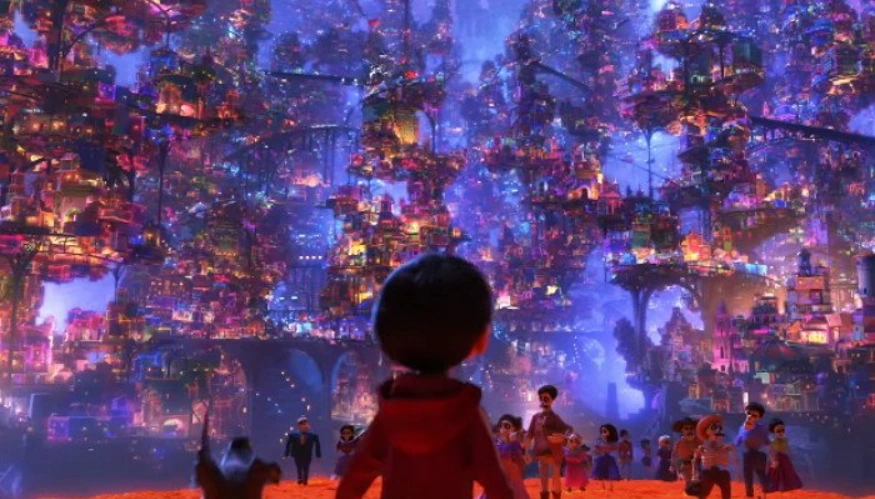 영화 <코코>에서 주인공 미구엘이 죽은 자의 세계를 마주한다.