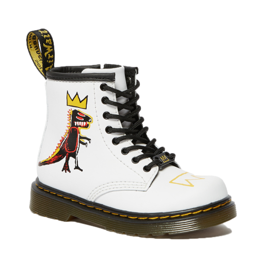 올해 국내 미술계 최대 이슈 중 하나인 '장 미쉘 바스키아'전을 보기 위해 롯데 뮤지엄을 방문했다. 전시를 보고 나오던 길에 들른 몰에서 바스키아의 상징 중 하나인 공룡과 왕관이 그려진 1460 부츠 디스플레이가 보였다. 탄성이 나올 정도로 예쁜 이 워크부츠는 키즈 전용 상품이라고. 하얀 부츠 위에 그려진 바스키아의 그림을 보고 있자니 오래간만에 결이 맞는 콜라보가 나왔구나 싶다. 왜 성인 제품은 없나요? 폰을 꺼내 검색해보니 어른을 위한 부츠는 이미 글로벌리 동이 난 듯싶다.