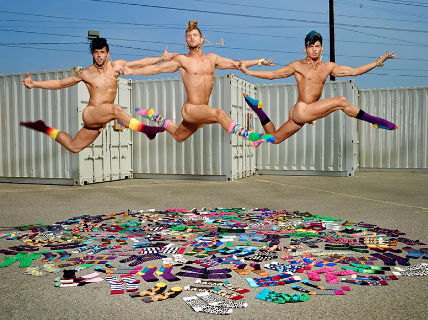 실오라기 하나 걸치지 않은 남자 세 명이 정면을 응시한 채 점프하고 있다. 아니, 양말은 신었으니 다행히 실오라기 하나 정도는 걸쳤다고 하는 게 맞겠다. 자칫 선정적인 캠페인에 당황하기 쉽지만, 사진작가 데이비드 라샤펠을 알고 있는 사람이라면 그의 직설적인 표현방식이 그리 놀랍지만은 않을 것이다. 감상자들을 대개 그의 작품을 아래와 같은 방식으로 관람하게 된다. 먼저, 선정적이거나 난해한 작품이 관람자의 시선을 빼앗는다. 그리고 시선을 빼앗긴 관람객은 작품 안에서 벌이지는 상황에 대해 의문을 갖고, 이해의 단서를 찾기 위해 작품 곳곳을 살핀다. 끝내 감상이 마무리될 즈음에는 처음 들었던 남사스러운 생각과 느낌은 온데간데없고 제품 혹은 캐릭터만이 신선하고 즐거운 방식으로 기억된다. 강렬한 끌림과 묘한 흥미, 그리고 진한 여운. 세계적인 사진작가 데이비드 라샤펠의 특유의 작품 표현이 만들어 낸 관람 방정식이다. 거기에 화려한 해피삭스 양말까지 신겨준 격이니, 헤르메스가 날개 달린 신발을 신은 것 못지않은 착용감이다. 그래서 그런지 실제 광고 속 주인공들도 양말만 신은 채로 중력을 거스르며 훨훨 날고 있다.