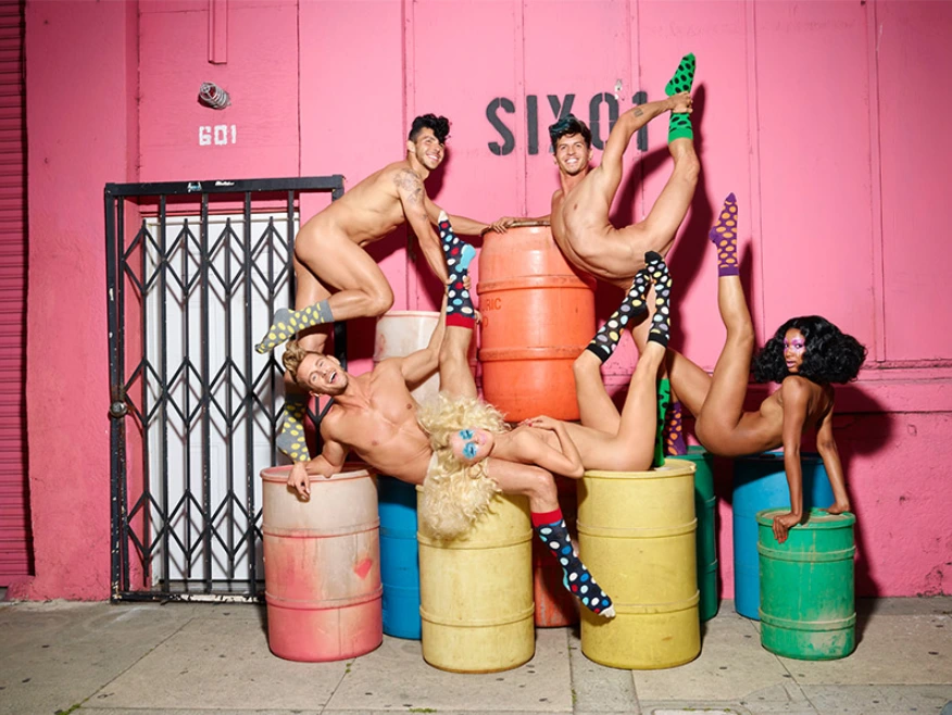 해피삭스는 스웨덴의 양말 브랜드이다. 북유럽 디자인의 성지 스톡홀름에 본사로 두고 있다. 마리메꼬 특유의 색감과 패턴을 양말에 그대로 옮겨 놓은 것 같으면서도, 양말 한 켤레마다 이케아의 쇼룸처럼 넘치는 개성을 갖고 있다. 해피삭스는 특히 다양한 분야의 아티스트들과의 협업으로도 유명하다. 디즈니, 비틀스, 스눕독 등 세대와 장르 불문한 콜라보들이 양말을 캔버스로 펼쳐진다. 이스트사이드 갤러리 출신의 팝아트 거장들 앤디 워홀과 키스 해링의 작품을 양말에 가득 담아냈던 프로젝트도 인상 깊은데, 이 정도면 콜라보를 위해 회사를 설립한 것은 아닌지 의문이 들 정도다. 데이비드 라 샤펠은 해피삭스의 창의와 도전이라는 정체성을 하나의 캠페인에 잘 버무렸다. 이번 데이비드와 콜라보는 총 아홉 장의 사진과 구 분짜리 단편영화로 펼쳐졌는데, 비교적 얌전한 사진은 차치하더라도 'Exorsocks-HappySocks'라는 제목의 9분짜리 영상은 속된 말로 야하고 잔인하다. 만약 해피삭스의 CEO가 이것마저 진심으로 사랑했다면, 해피삭스는 예술이 주업이고, 양말은 부업인 브랜드임이 틀림없다.