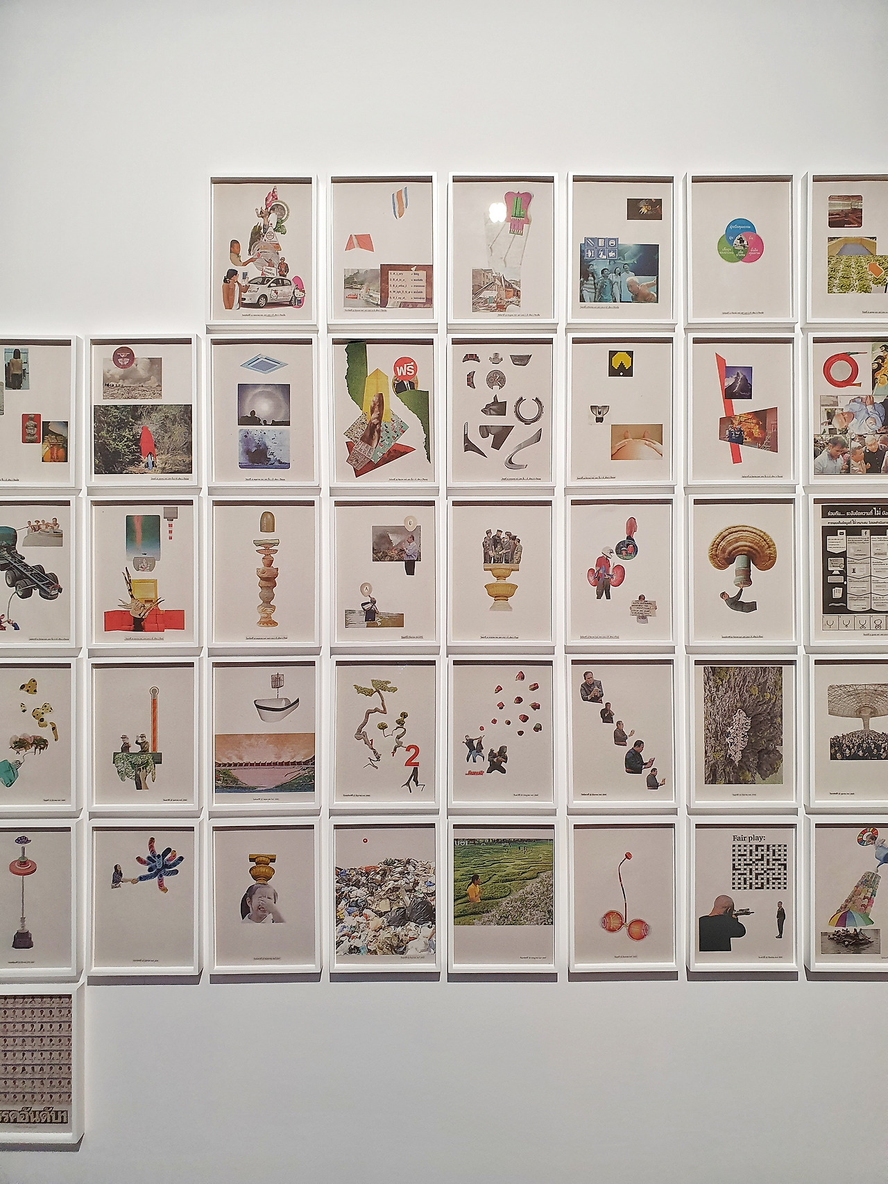태국 작가 출라얀논 시리폰(Chulayarnnon Siriphol)의 작업 방식도 무척 흥미롭다. 그의 작품은 매일의 신문을 오려서 만든 콜라주로, 그 기간이 태국에서 쿠데타가 발생했던 2014년부터 총선이 열린 2019년까지였다는 점이 이목을 끈다. 군부에 의해 통제되는 뉴스를 해체하고 재조합하여 예술가이자 국민으로서 주권을 표현했다는 점에서 어디에, 어떻게 기록할 것인지에 대한 깊은 고찰이 느껴진다.