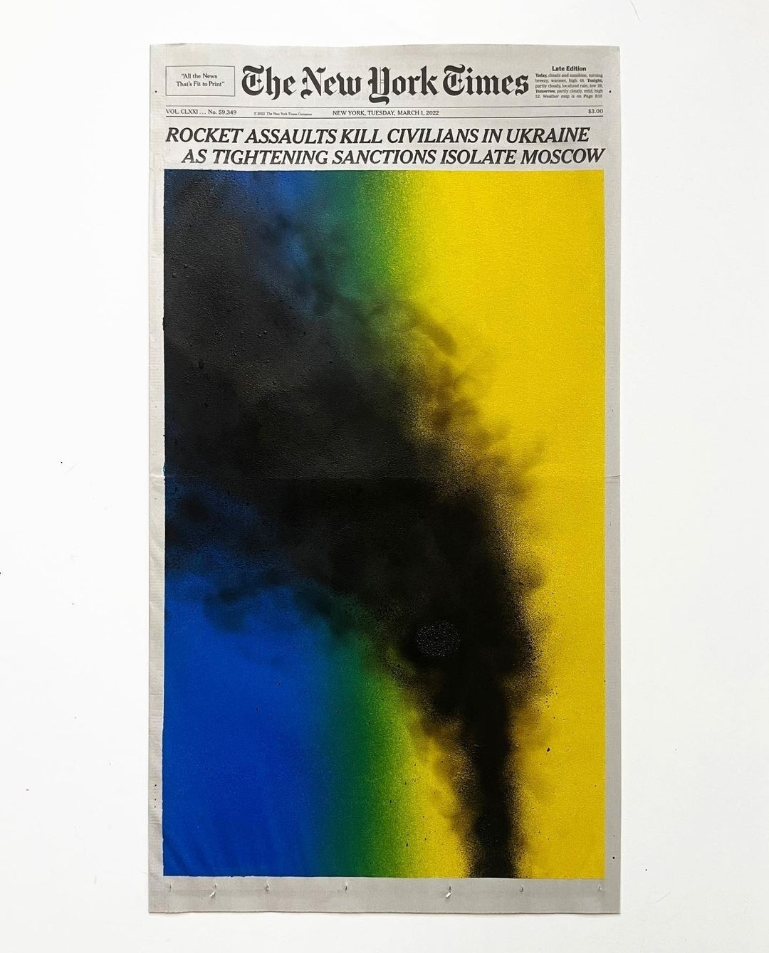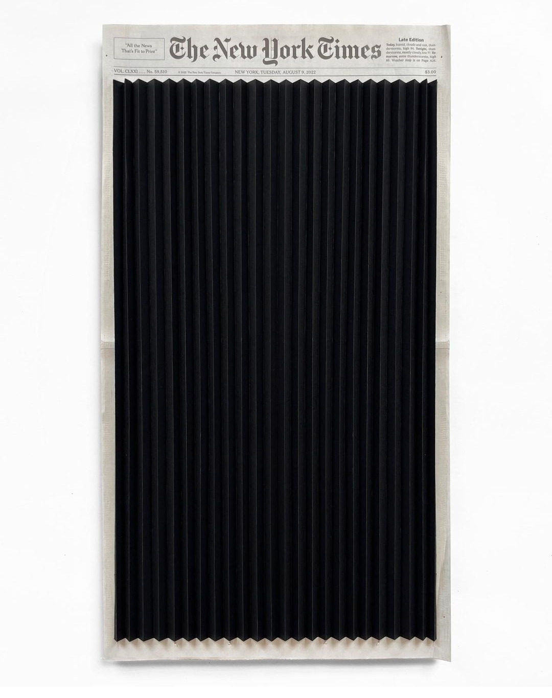 예술가 중 누군가도 좁게는 자신의 하루를, 넓게는 세상의 하루를 담아내는 고민을 한다. 뉴욕에서 활동하고 있는 일본 작가 쇼 시부야(Sho Shibuya)는 뉴욕타임스의 1면에 그림을 그리는 작가다. 뉴욕시가 코로나19로 락다운이 걸리자 그는 신문 표지에 아침 일출을 그려나가기 시작했다. 하늘을 볼 수 없는 패닉 상태에도 그날그날의 빛을 기억할 수 있도록. 러시아의 우크라이나 폭격이 있었던 날엔 어김없이 우크라이나 국기에 연기가 피어오르는 도상을 선보이고, 패션 디자이너 이세이 미야키가 생을 마감한 날에는 플리츠 형태의 검은 종이 한 장이 신문에 덧대지기도 한다.