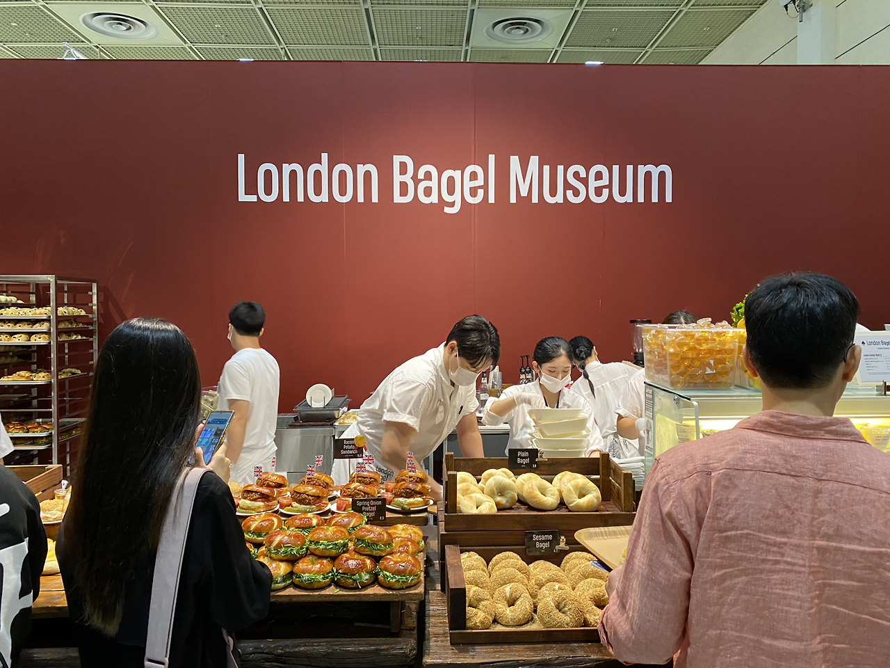 프리즈 내부 행사장도 이에 맞게 상당히 다채로운 컨텐츠로 채워졌습니다. 2년 차에 접어든 LG OLED 부스에는 작년 김환기 화백에 이어 올해는 서세옥 작가를 조명하여 다양한 체험 프로그램이 진행됐고, BMW, 브레게와 같은 럭셔리 브랜드 공간에는 프랑스 주얼러 쇼메가 추가되며 고객들의 관심을 받았습니다. 특히 런던 베이글 뮤지엄 공간은 커피를 마시거나 간단하게 허기를 달래고자 하는 방문객의 큰 호응을 이끌어냈는데요. 저도 금요일 11시 반에 도착해 식사가 애매하던 중 런배뮤에서 베이글과 커피로 아주 만족스럽게 허기를 달랠 수 있었습니다.