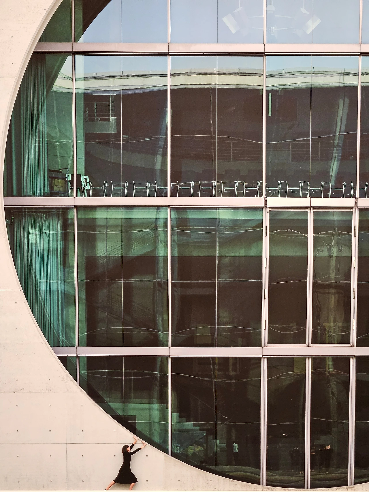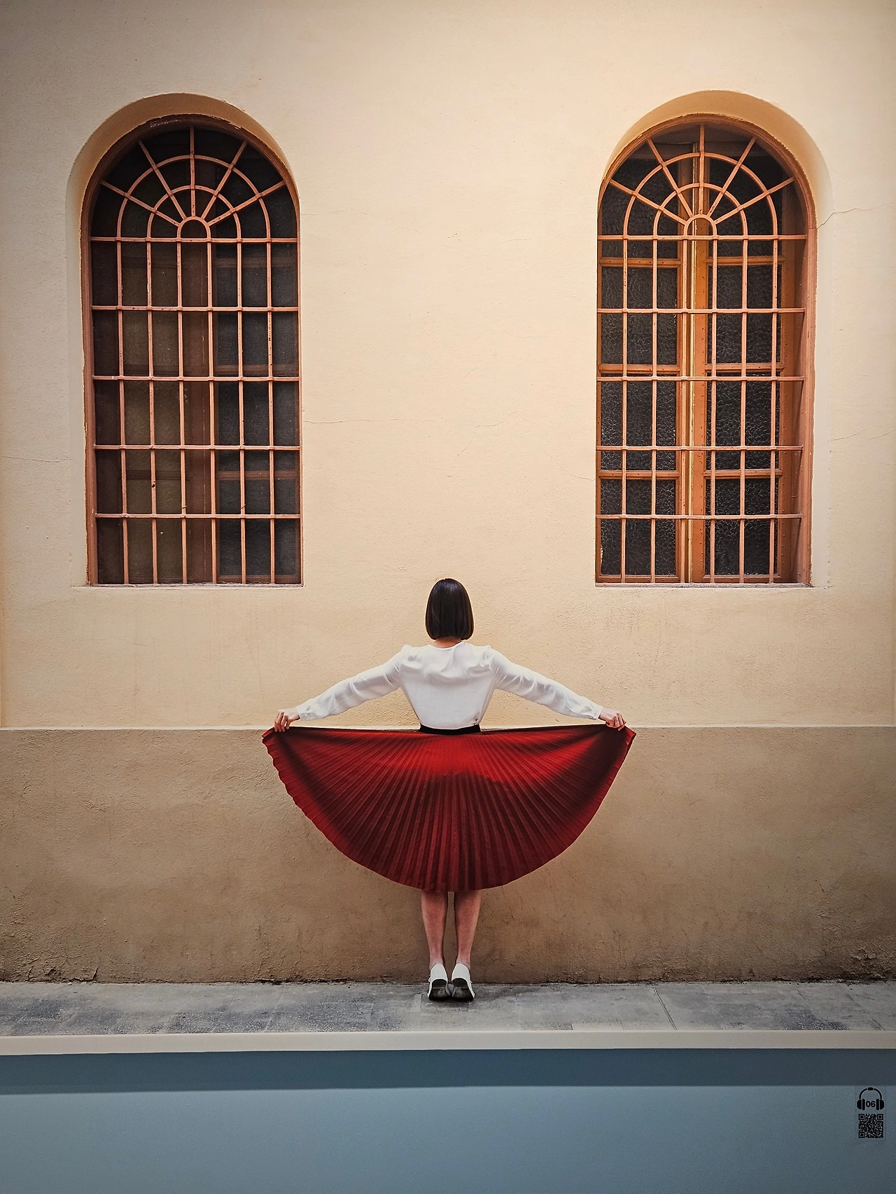 얼마 전 관람했던 전시가 떠오릅니다. 스페인 출신의 젊은 작가듀오 안나 데비스와 다니엘 루에다의 사진전이었죠. 이 듀오는 일상에서 찾을 수 있는 다양한 소재에서 예술적 영감을 끌어냅니다. 특히 두 작가 모두 건축을 전공했기에, 도시의 건축물들은 이들의 날카로운 눈을 피해 갈 수 없을 것입니다. 건물의 창문은 사람의 눈으로 다시 태어나고, 안나 데비스는 스스로 모델이 되어 치마를 활용해 웃는 입모양이 되어 작품에 스며듭니다.