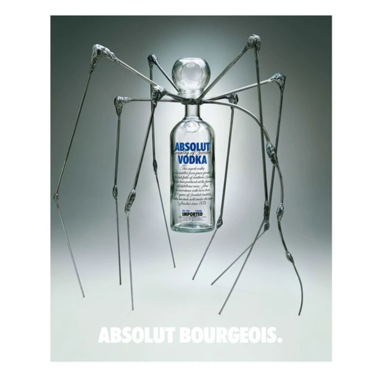 그녀의 조형물인 마망(MAMAN)의 거미 몸통에 앱솔루트 병이 자연스럽게 대체 되었다. 어머니의 아가페적인 사랑을 투영한 작품의 원 주제와 앱솔루트 보드카 병의 순수하고 투명한 이미지가 중첩되어 시너지를 냈다. 과감히 거미의 몸을 차지하고도 작품 전체적 분위기에 누를 끼치지 않는 앱솔루트의 유연함이 놀라울 따름이다. 이정도가 되면 단순히 제품을 마케팅 하기위한 콜라보가 아닌, 대중과 작가를 잇는 아트 메신저로서 협업을 진행한 앱솔루트에게 찬사를 보낼 수 밖에 없다.