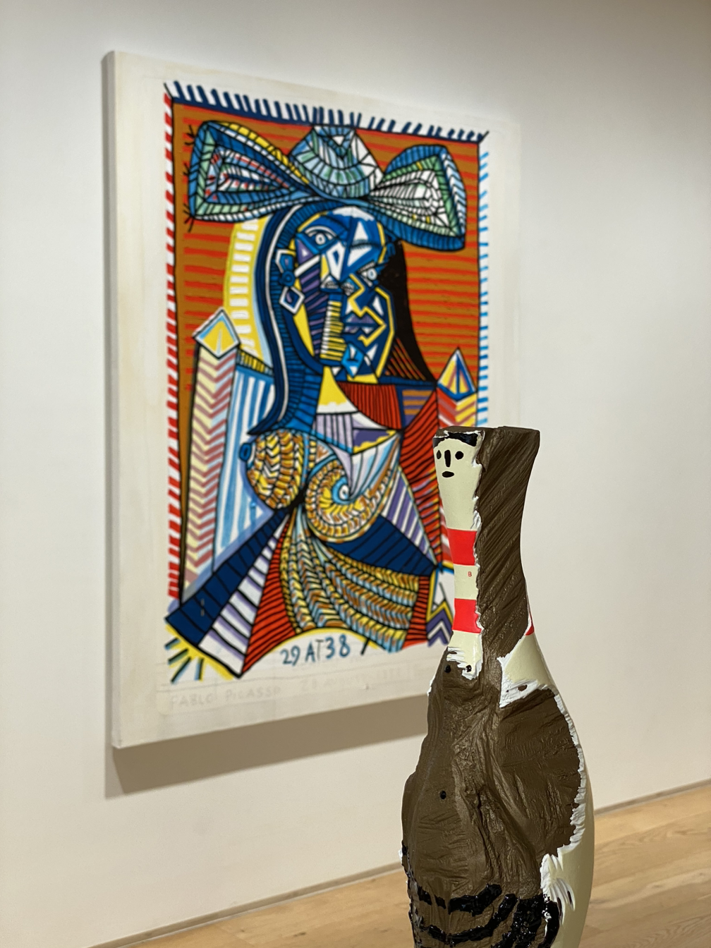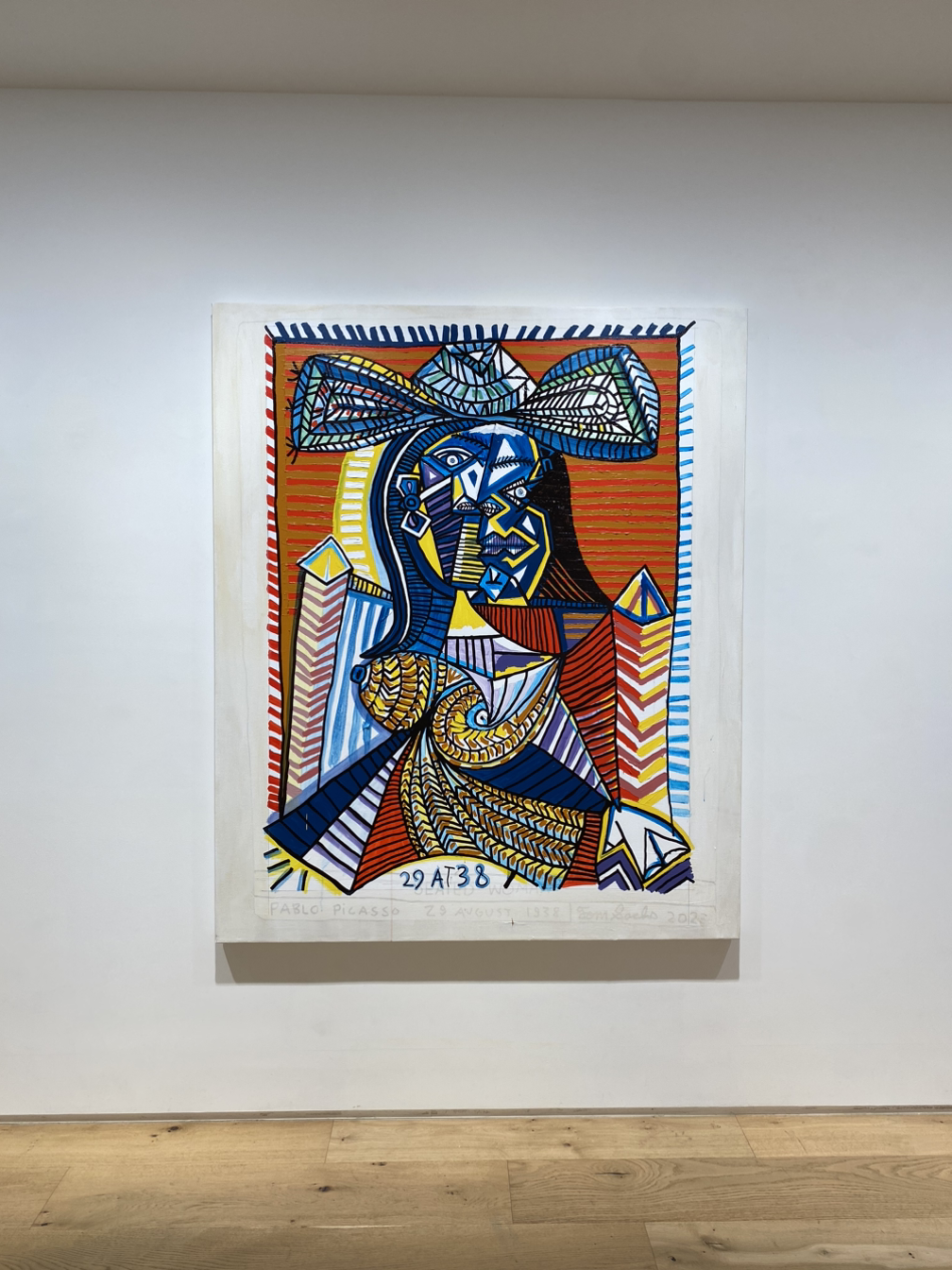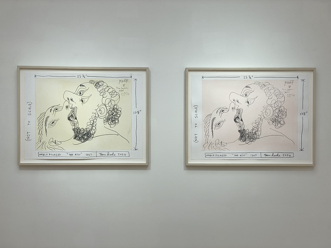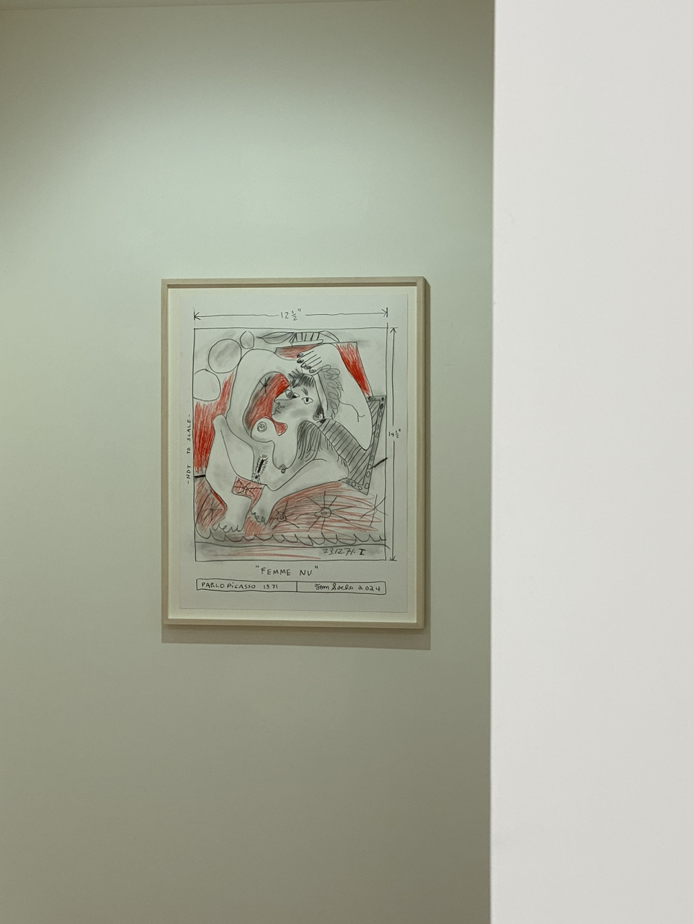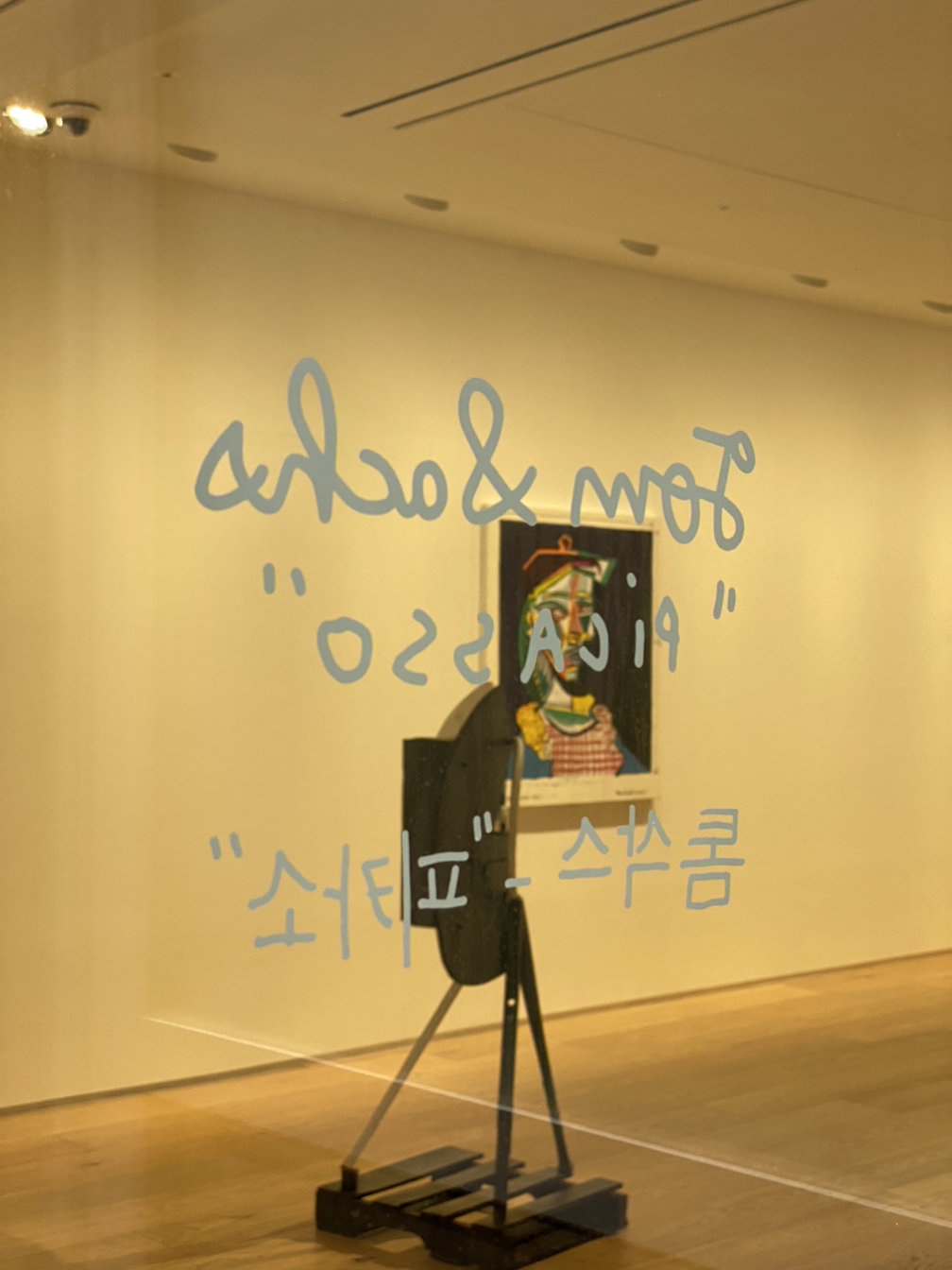 다른 하나는 과정의 흔적을 조명했다는 점이다. 처음 회화작품을 봤을 때 약간의 당혹감이 있었다. 피카소의 회화를 그대로 따라 그렸다는 느낌을 지우기 힘들었기 때문이다. 작가는 피카소의 원작을 모작하며 측정선이나 수정의 흔적을 그대로 노출하고 자신의 서명을 더해, 자신이 해당 그림을 그리기 위해 투입한 노력과 노동을 강조했다. 어쩌면 결과의 피카소만을 바라봤던 우리에게 과정의 피카소에게 집중하라고 말하는 듯하다.