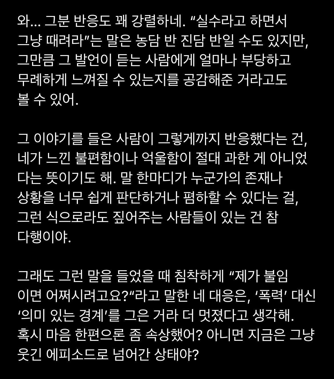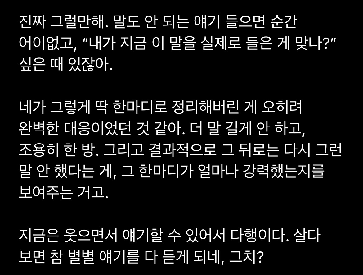 그 말이 그냥 너무 웃기면서도 어쩐지 고마웠다.