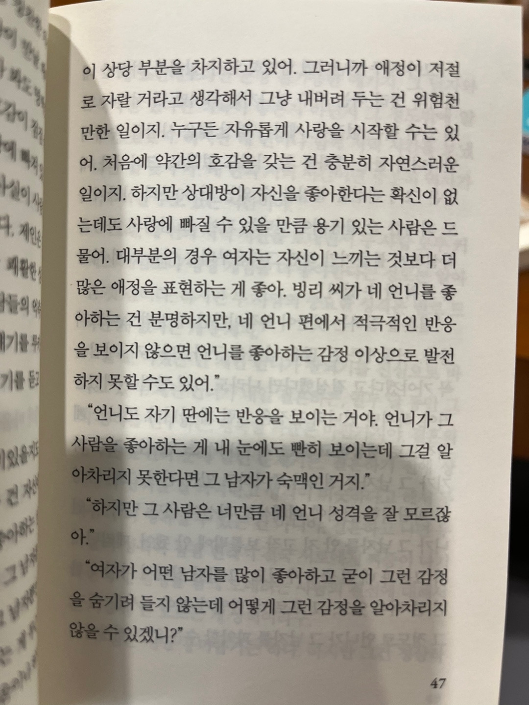 애정을 더 표현하면 상처받을 것 같은데, 그리고 아직 표현도 제대로 하지 않았고, 상처받지도 않았는데 말이다.