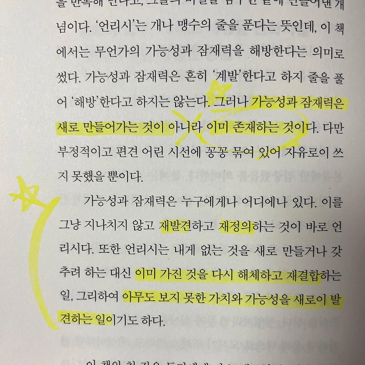 그러나 가능성과 잠재력은 새로 만들어 가는 것이 아니라 이미 존재하는 것이다