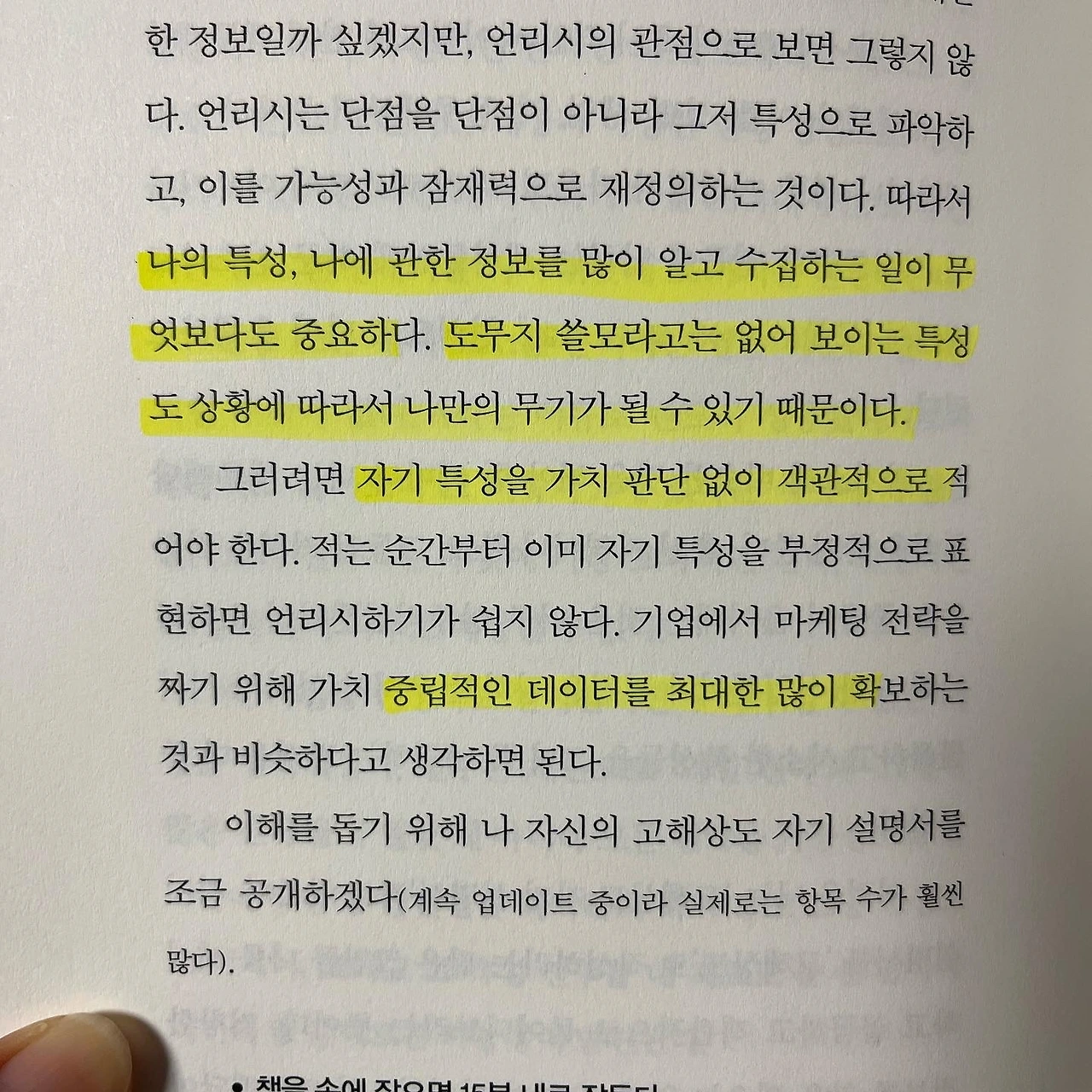 ⭕️그러려면 자기 특성을 같이 판단없이 객관적으로 적어야 한다.