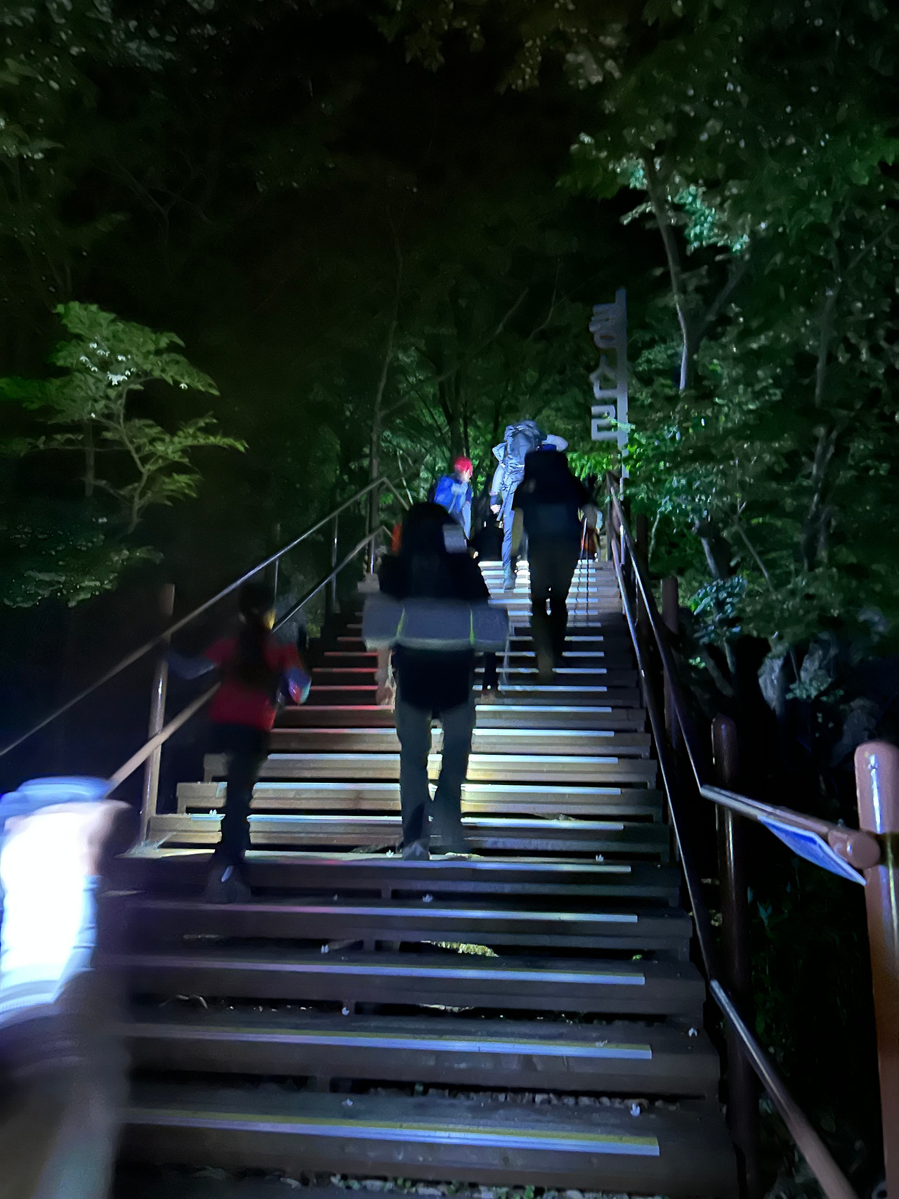 금요일 밤 11시에 버스가 출발했다. 이렇게 일찍 출발하는 이유는 대피소까지 도착 시간 때문이다. 대피소 도착 예상 시간은 선두 저녁 6시, 후미 밤 10시였다.