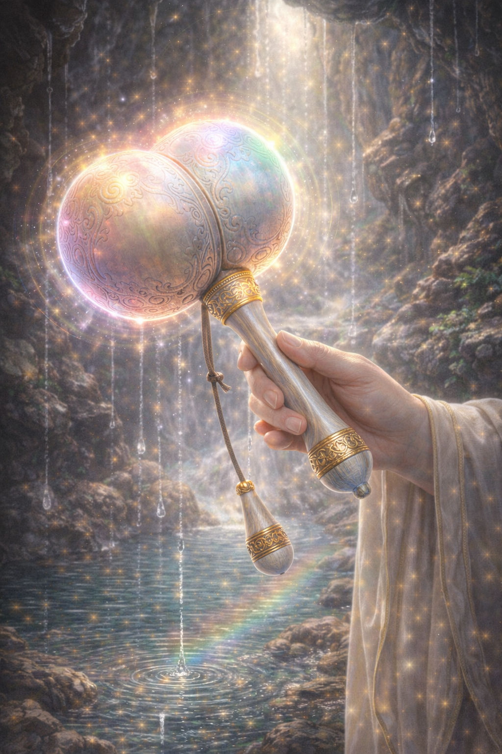 핸드팬 같은 울림이 일어나더니 - 이어서 무지개 빛으로 빛나며